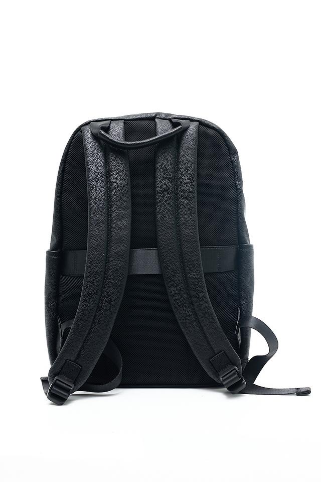Рюкзак изготовлен из прочного полиуретана, что обеспечивает его долговечность и устойчивость к износу. Текстурированная поверхность материала придает изделию элегантный вид.