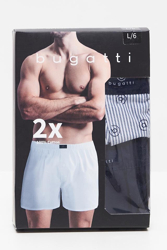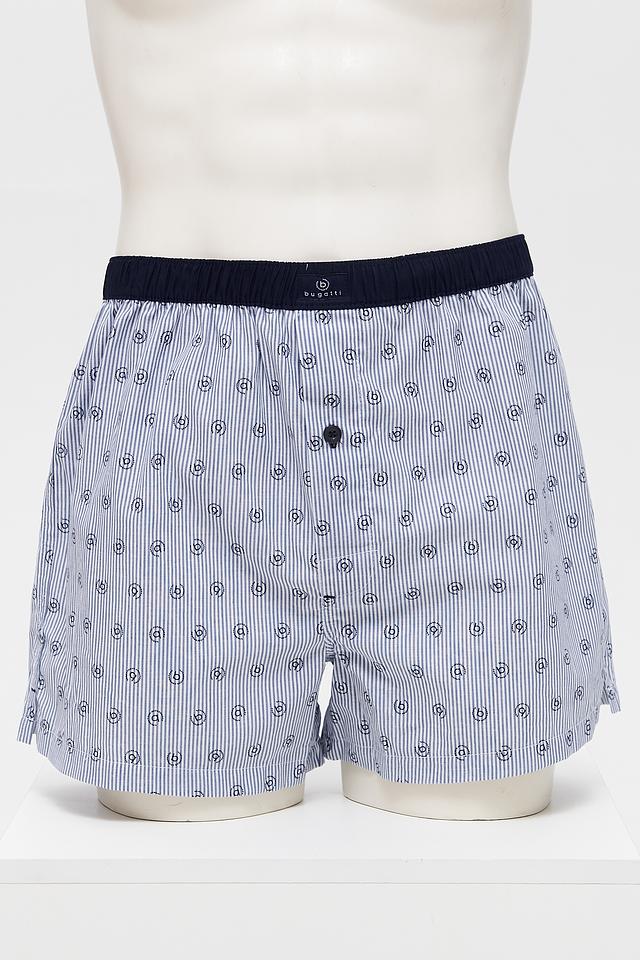 Представляем мужские трусы от бренда Bugatti ACC. Модель выполнена в синем цвете с вертикальной полоской и геометрическим принтом.