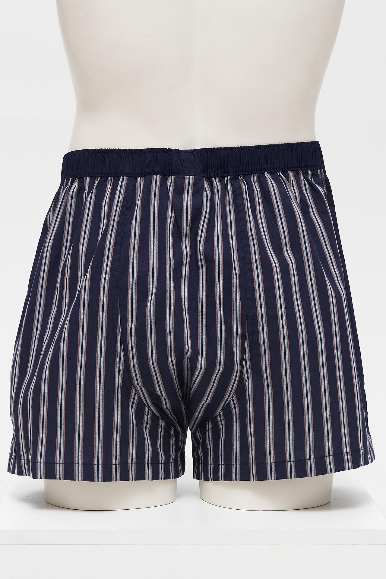 - Элегантный дизайн. Темно-синие трусы с тонкими вертикальными полосками белого, бордового и зеленого оттенков создают классический, стильный образ. Этот дизайн универсален и всегда актуален.
