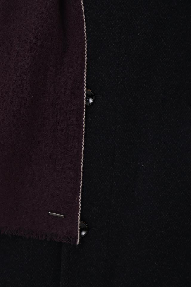 Шарф имеет прямоугольную форму и выполнен из мягкой и приятной на ощупь ткани с добавлением шерсти. Текстура материала позволяет создать уютный и комфортный образ.