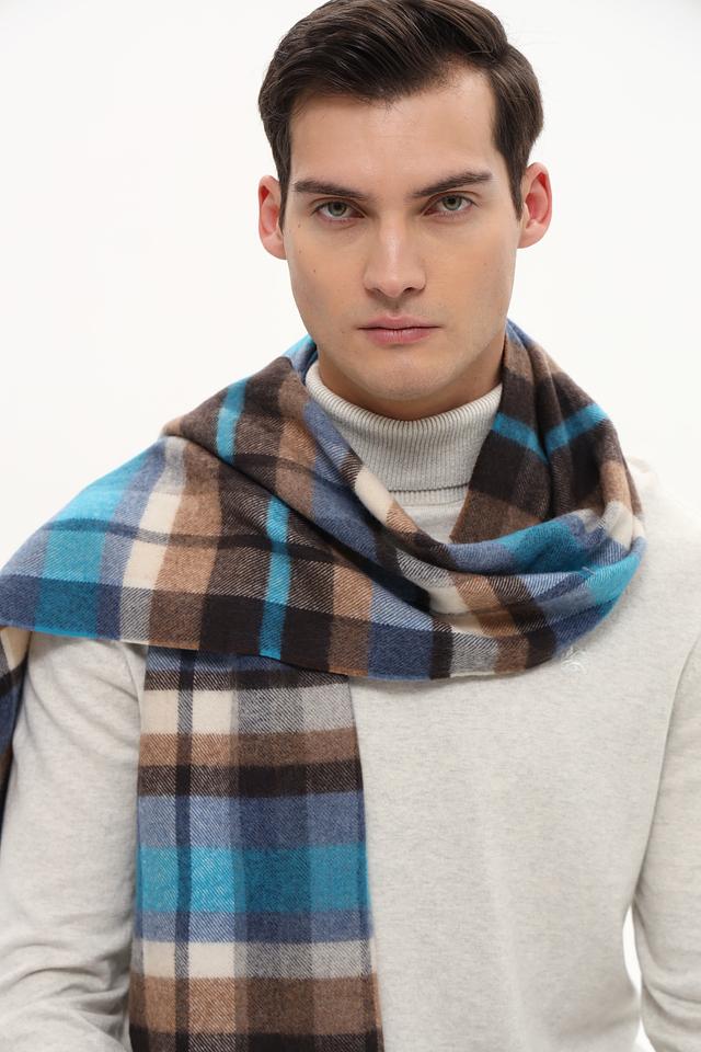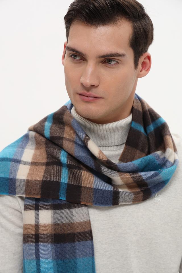 Представляем вашему вниманию стильный мужской шарф от бренда Bugatti ACC. Шарф выполнен в классической клетке, сочетающей в себе оттенки синего, коричневого и бежевого цветов.