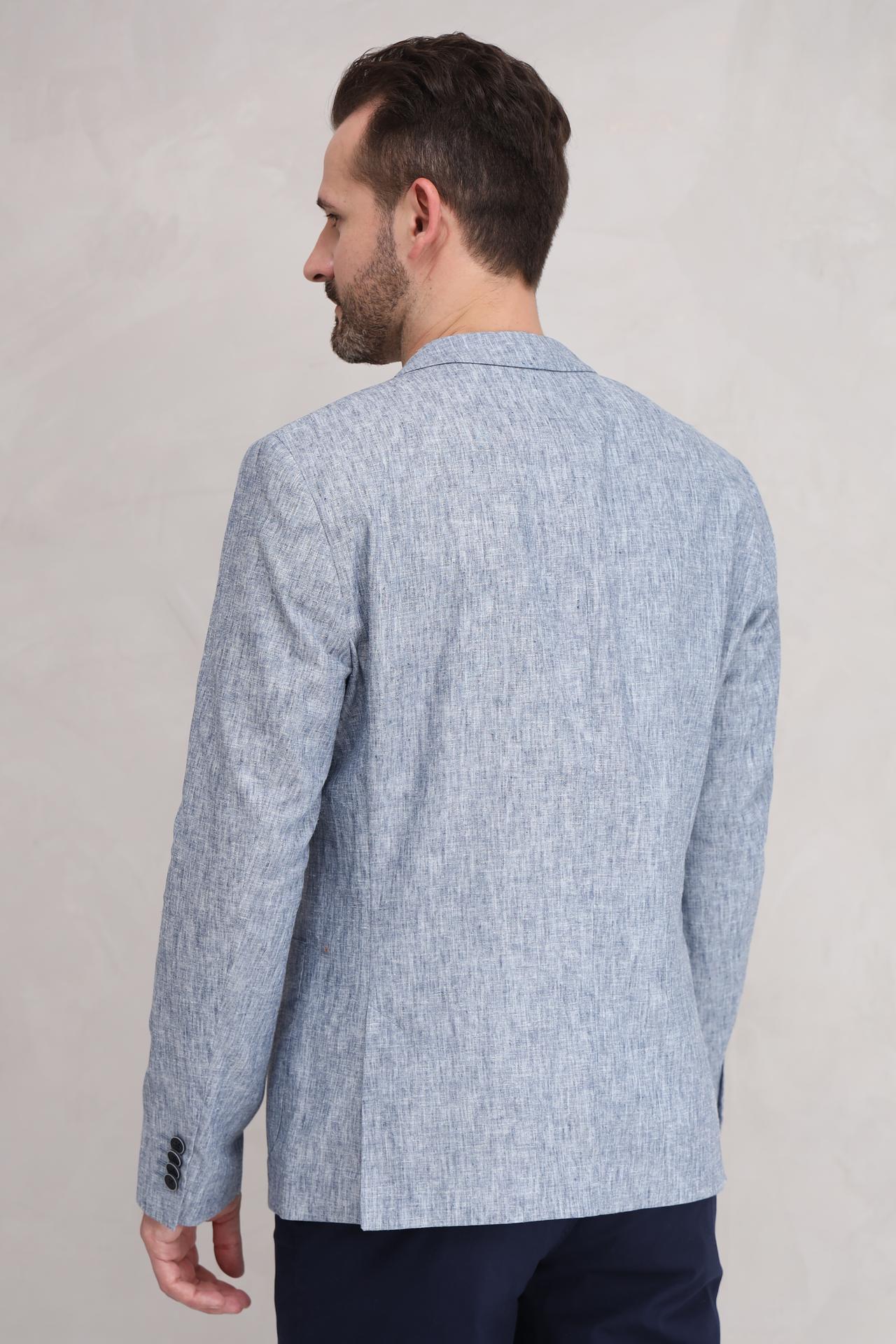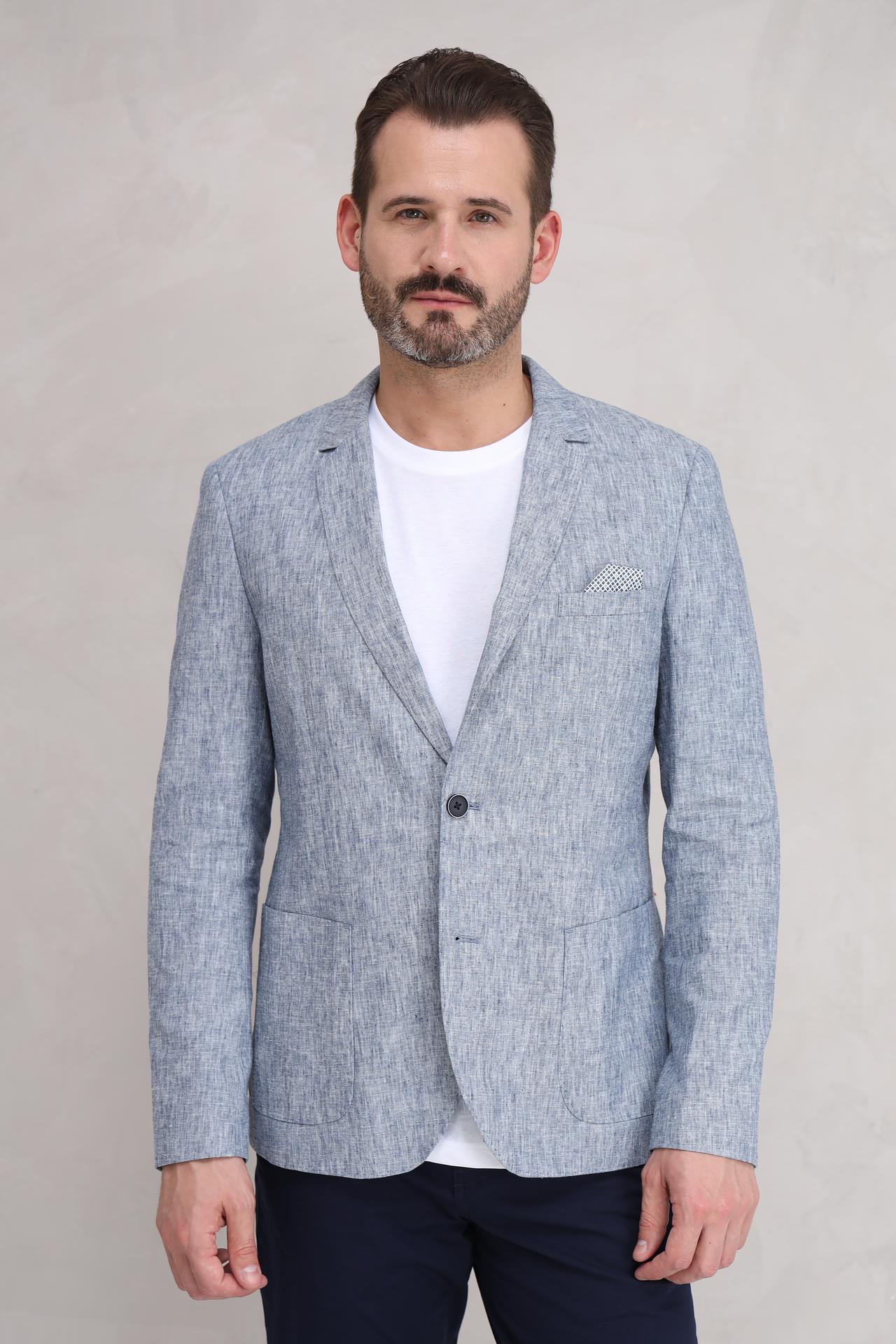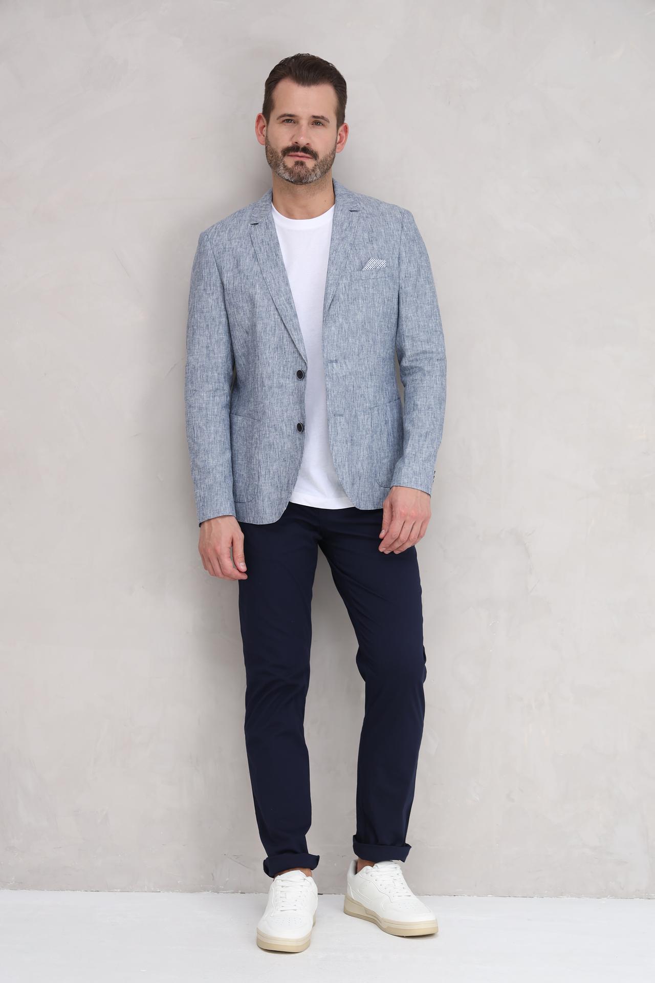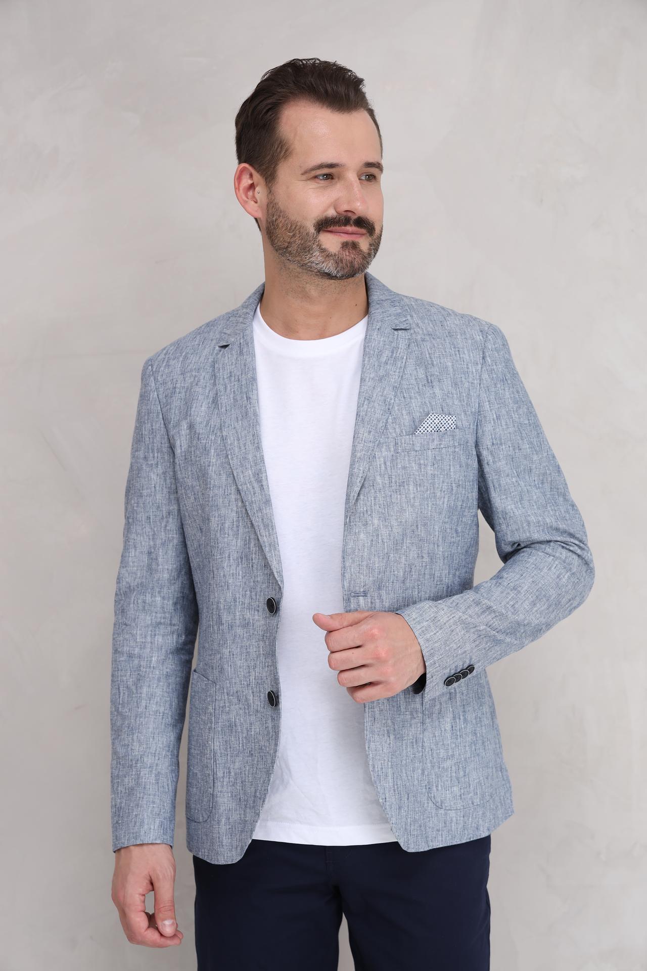 - Натуральный состав ткани: Благодаря сочетанию льна и полиэстера, пиджак обладает прекрасной воздухопроницаемостью и износостойкостью.