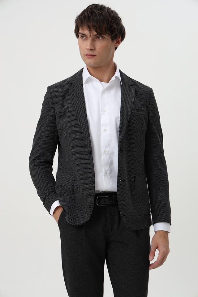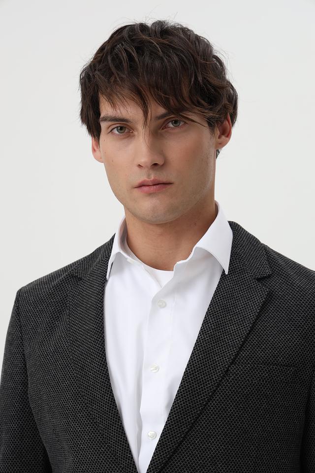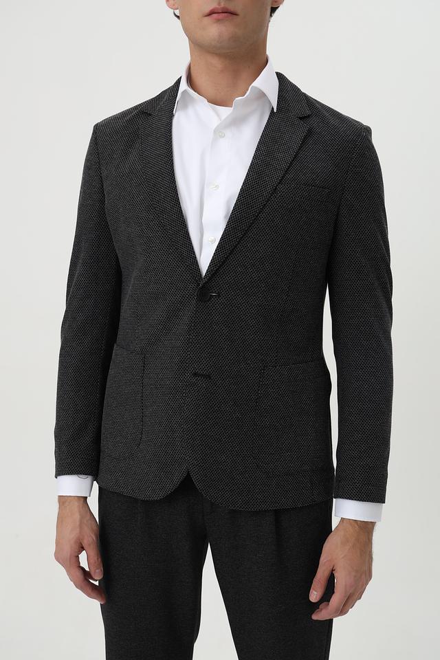 Мужской пиджак от бренда Calamar – это идеальное решение для создания стильного и современного образа. Пиджак выполнен в сером цвете с мелким геометрическим принтом, который добавляет оригинальности.
