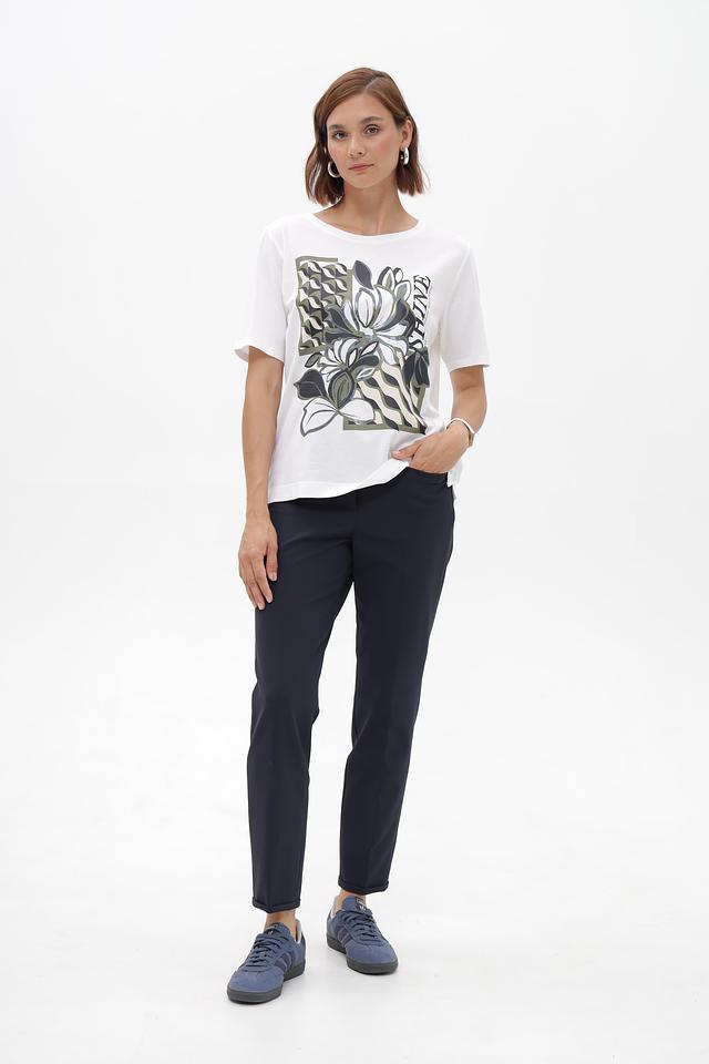 Брюки имеют прямой крой, зауженный к низу, и стандартную посадку на талии. Застежка на молнию и пуговицу, а также функциональные боковые и задние карманы.