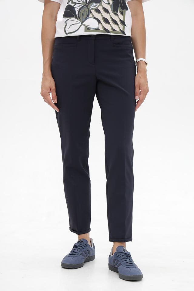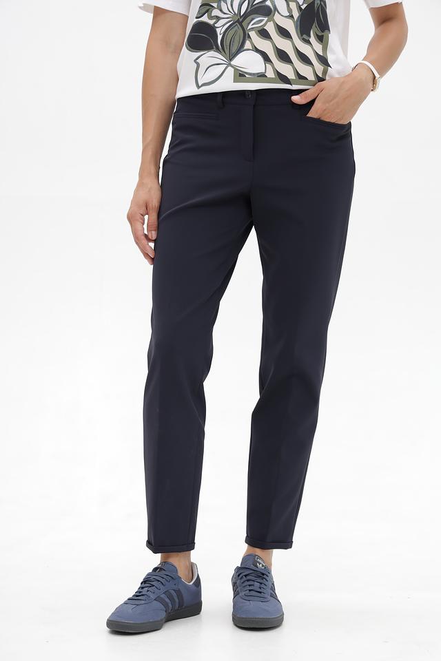 Темно-синие брюки Cambio классического кроя из полиамида с эластаном. Модель заужена к низу и имеет стандартную посадку на талии. Идеальный выбор для создания элегантного и комфортного образа. Состав: полиамид 88%, эластан 12%
