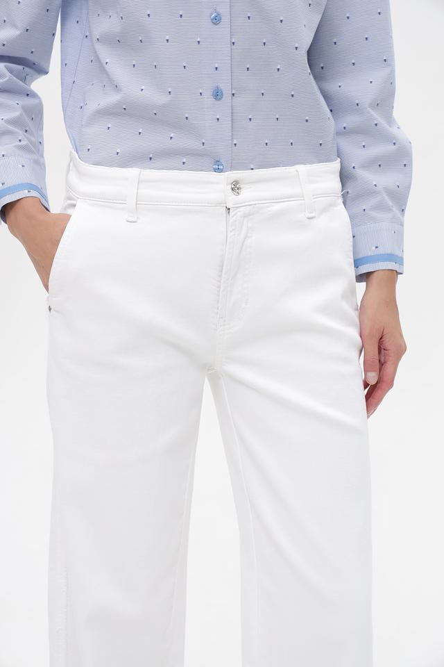 Белые джинсы клеш от Cambio из хлопка с добавлением эластана. Модель имеет классическую посадку, застежку на молнию и пуговицу, а также функциональные карманы. Состав: 92% хлопок, 6% эластомультиэстер, 2% эластан. Состав: хлопок 92%, эластомультиэстер 6%, эластан 2%