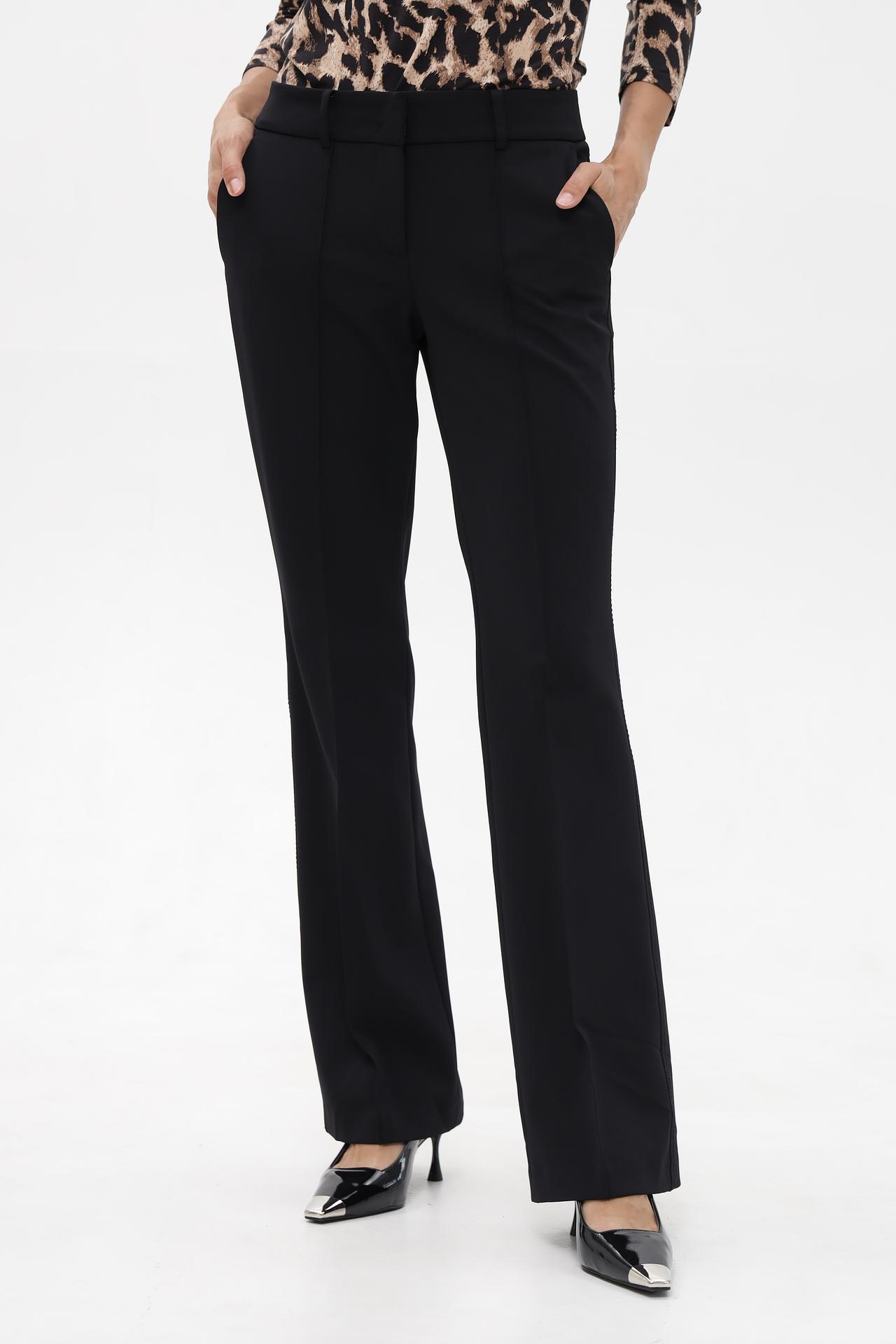 - Крой: Классический прямой крой с высокой посадкой. Брюки визуально удлиняют ноги и создают элегантный силуэт.