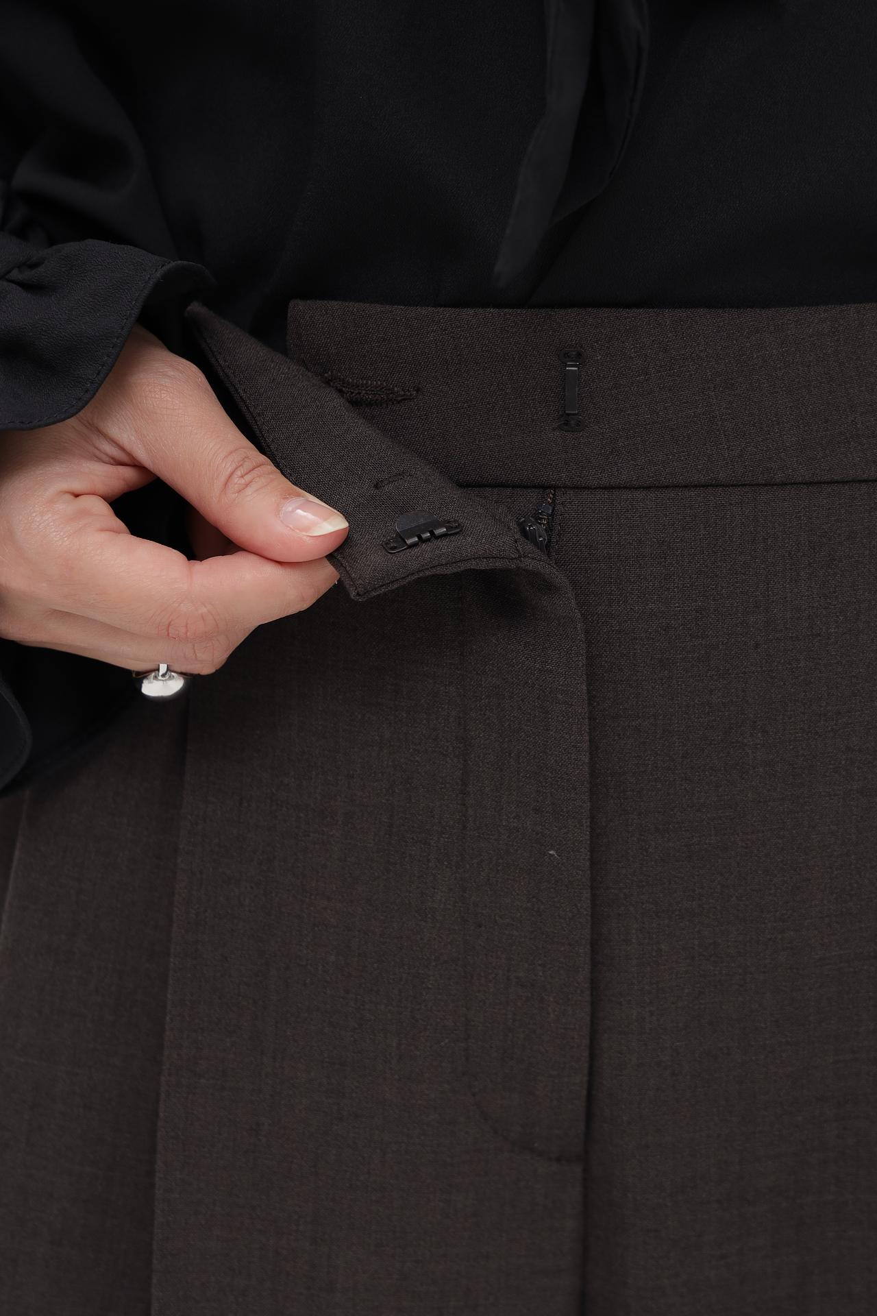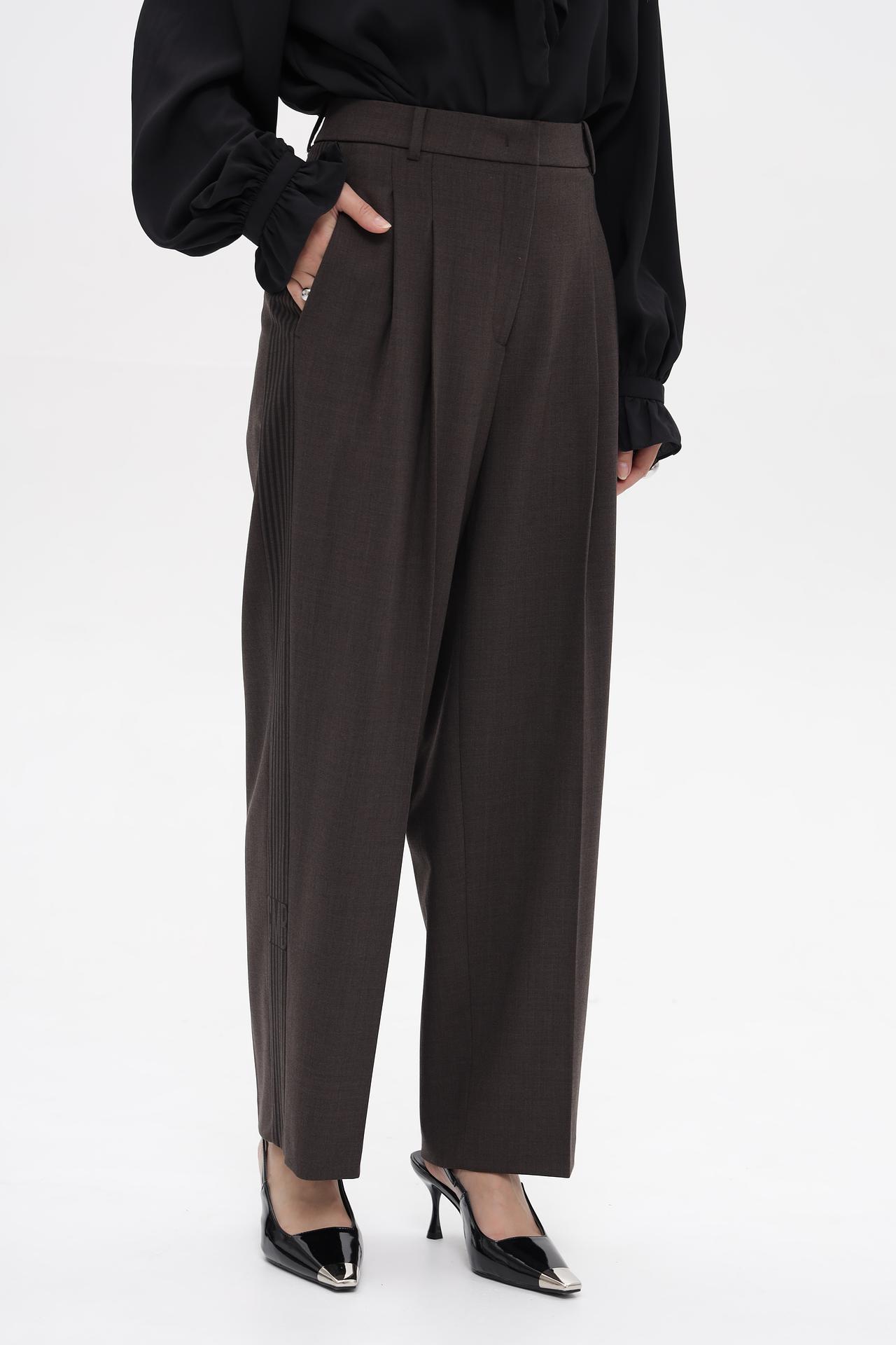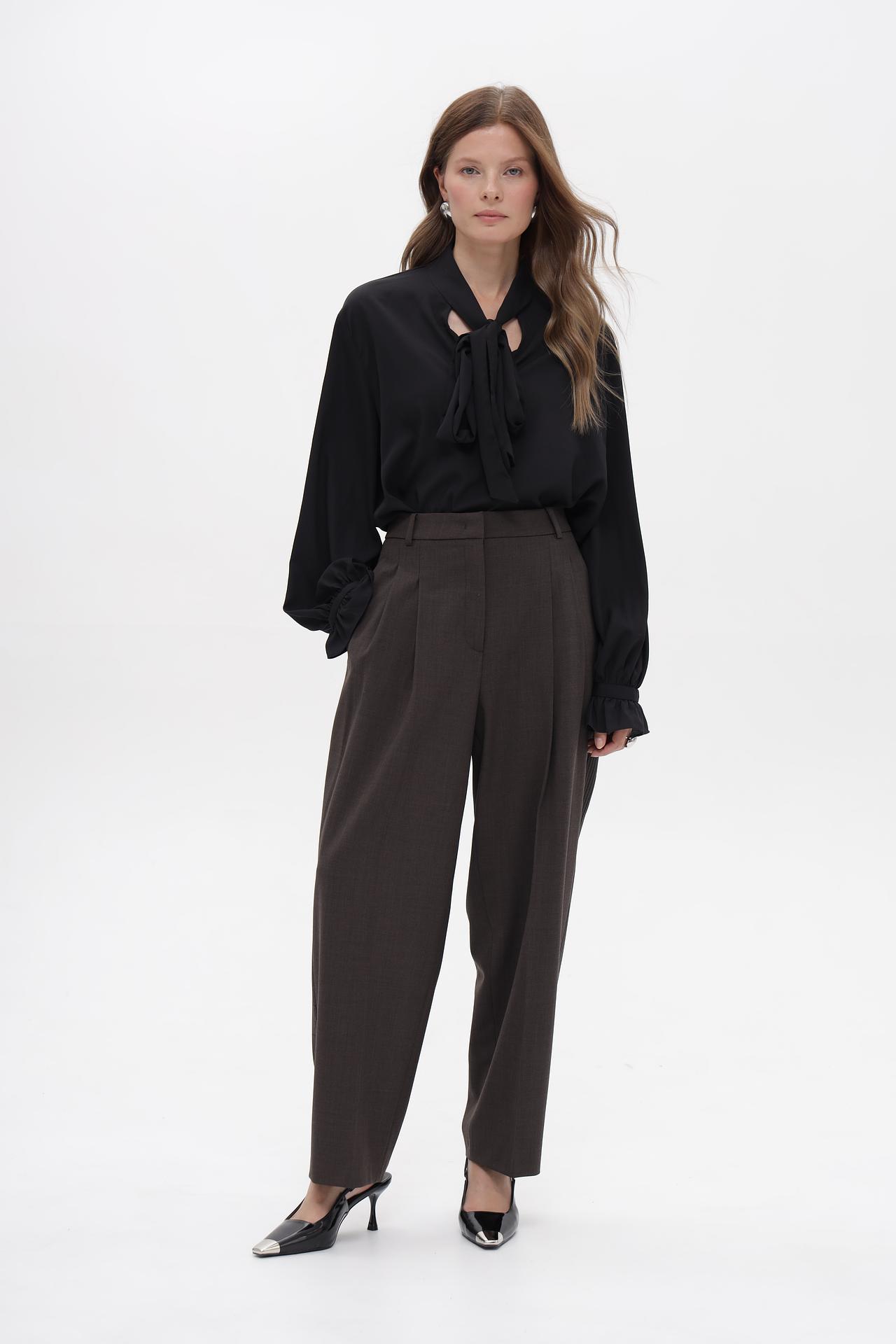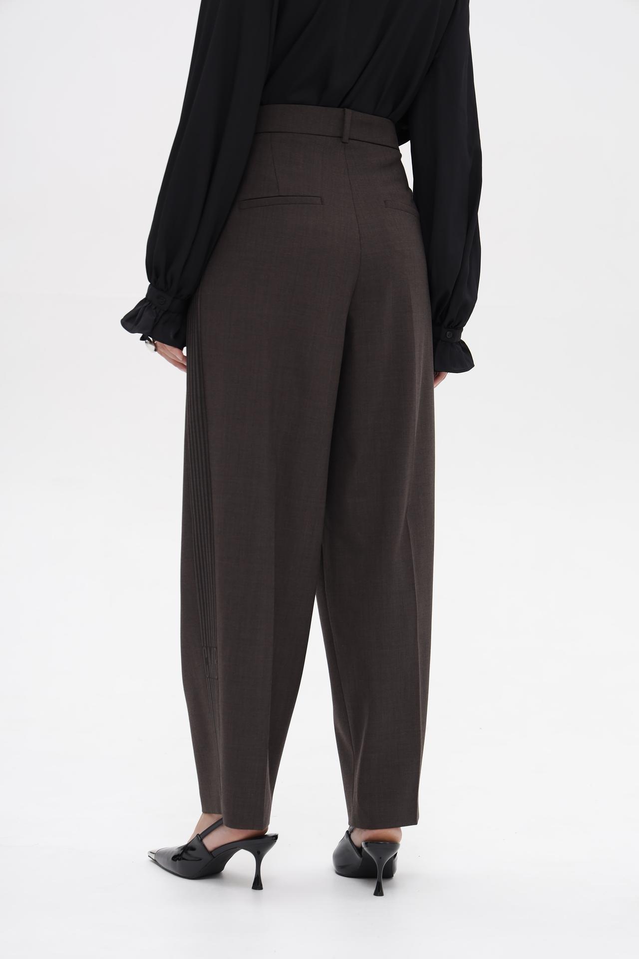 - Крой: Классический прямой крой с защипами у пояса. Эта модель брюк визуально удлиняет ноги и создает элегантный силуэт. Защипы добавляют объем в области бедер, что делает посадку более комфортной.