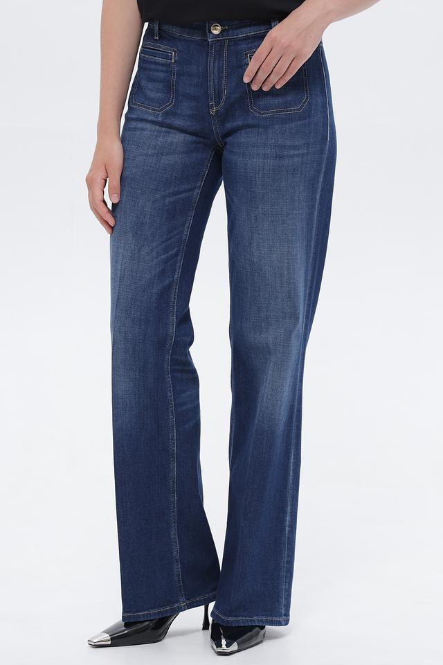 Синие джинсы клеш от Cambio из хлопка с добавлением эластана. Модель с высокой посадкой, оформленная декоративными накладными карманами. Состав: 92% хлопок, 6% эластомультиэстер, 2% эластан. Состав: хлопок 92%, эластомультиэстер 6%, эластан 2%
