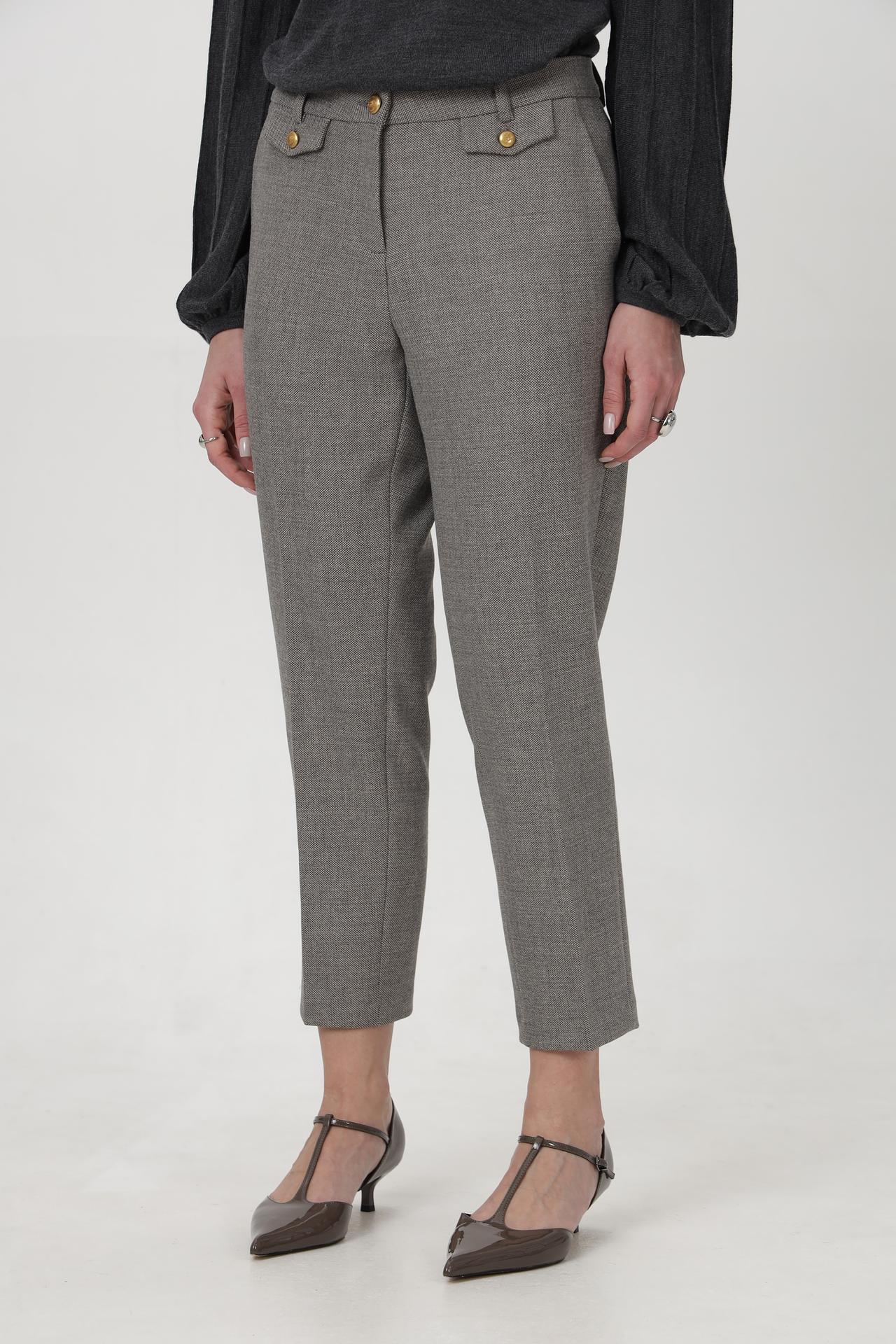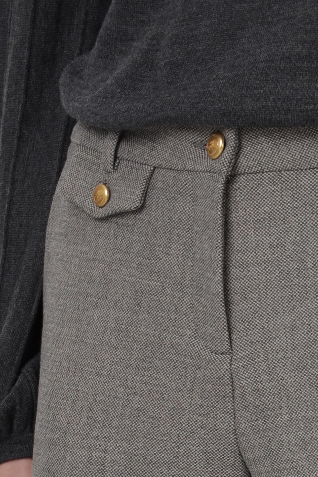 - Декоративные элементы: Карманы с золотистыми пуговицами добавляют изделию изысканности и шарма. Эти детали придают брюкам утонченный вид.