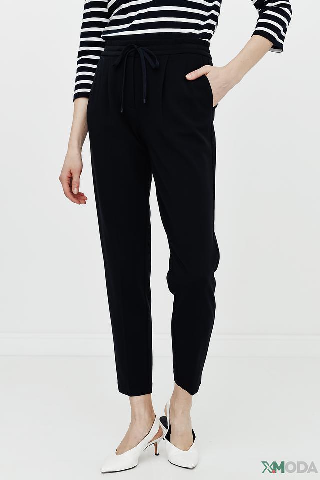 Брюки имеют прямой крой и стандартную посадку по фигуре. Пояс дополнен кулиской с кисточками, что позволяет регулировать облегание и создавать желаемый силуэт. Ткань, состоящая из вискозы, полиамида и эластана, приятна к телу и обеспечивает комфорт в течение всего дня.