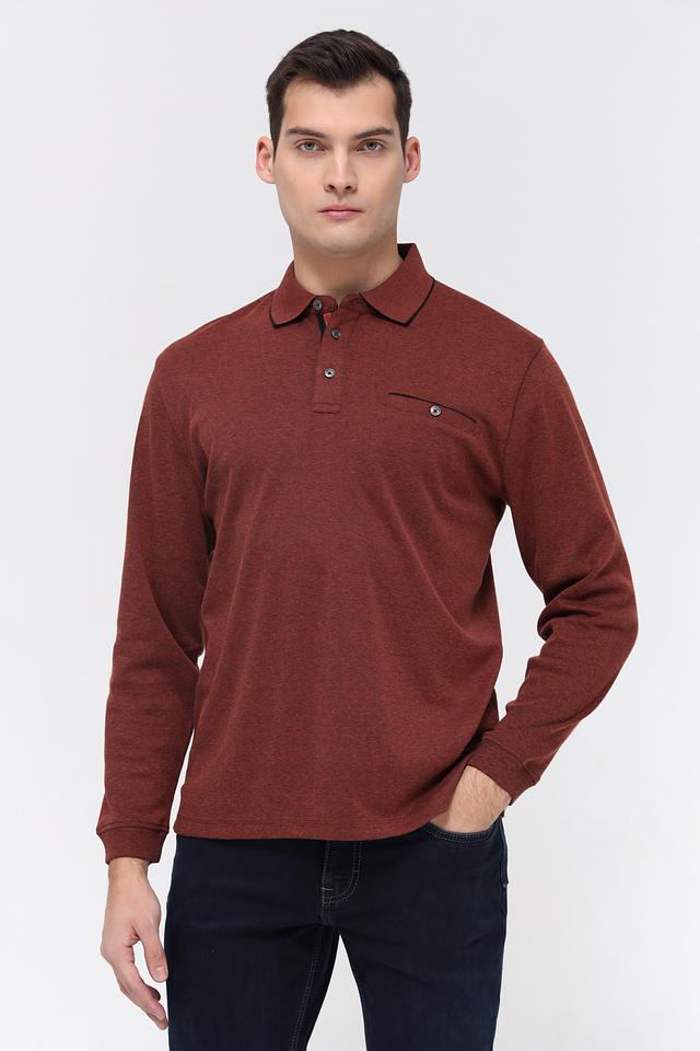 Мужское поло Casa Moda терракотового цвета с длинным рукавом. Изготовлено из хлопка с добавлением полиэстера для комфорта и износостойкости. Состав: хлопок 62%, полиэстер 38%