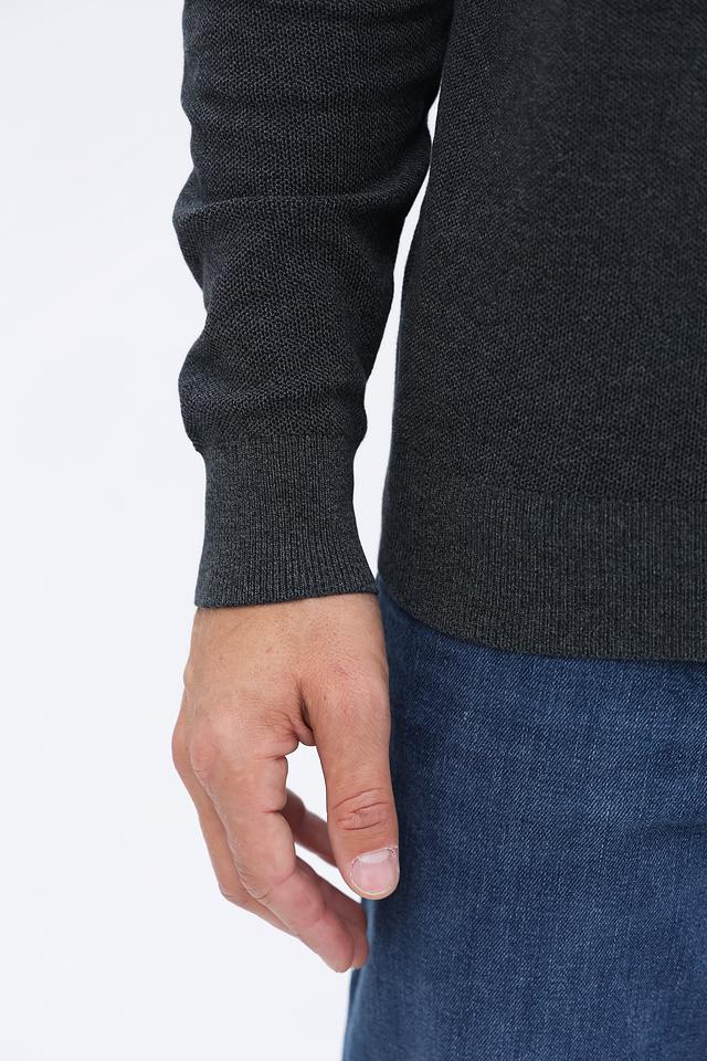 Джемпер имеет классический крой с круглым вырезом горловины и длинными рукавами. Текстура вязки придает изделию аккуратный и современный вид.