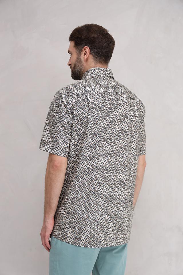 Мужская рубашка Casa Moda светло-серого цвета с коротким рукавом и оригинальным цветочным принтом. Изготовлена из 100% хлопка, обеспечивающего комфорт и воздухопроницаемость. Состав: хлопок 100%