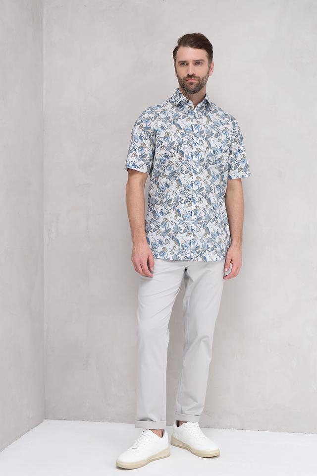 Мужская рубашка Casa Moda голубого цвета с ярким цветочным принтом. Изготовлена из хлопка с добавлением эластана для комфорта и лучшей посадки. Состав: хлопок 97%, эластан 3%