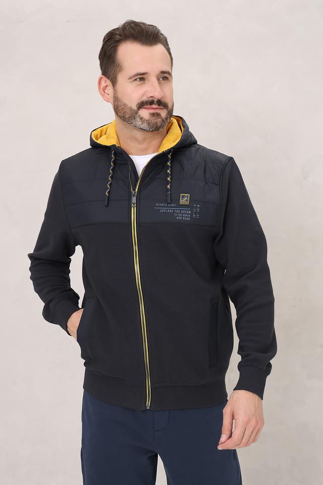 Мужской кардиган от Casa Moda – это практичная и современная одежда для создания комфортных образов. Модель выполнена в чёрном цвете с акцентным жёлтым капюшоном, что придает ей оригинальность.