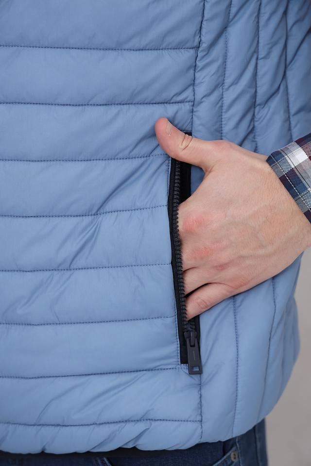 Жилет имеет удобный крой, который не сковывает движения. Застежка-молния спереди обеспечивает легкость надевания и снятия. Воротник-стойка добавляет изделию современный вид.