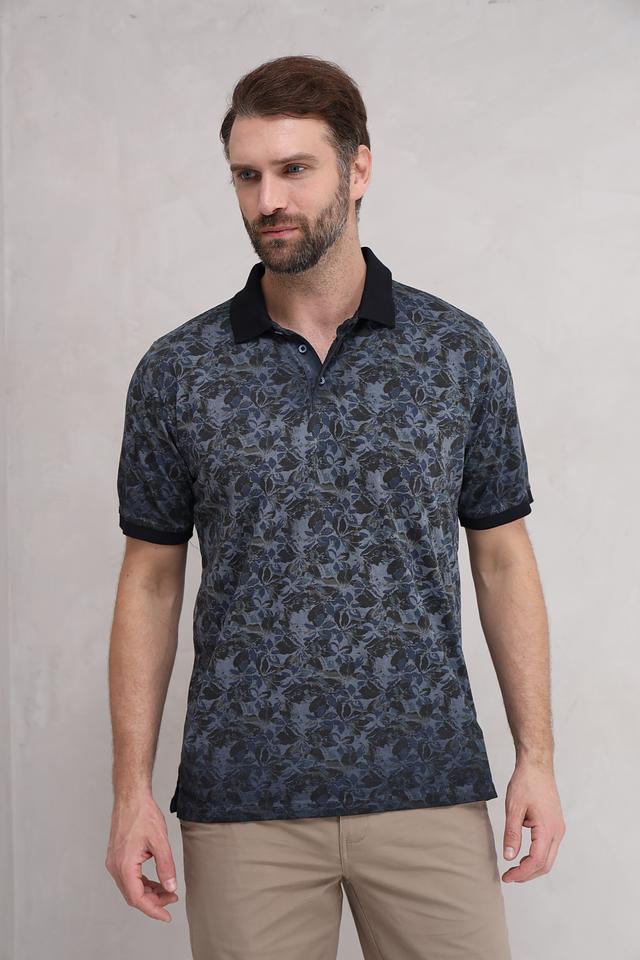 Мужское поло Casa Moda серого цвета с оригинальным цветочным принтом. Изготовлено из 100% хлопка, обеспечивающего комфорт и воздухопроницаемость. Стильный и удобный выбор для повседневной носки. Состав: хлопок 100%