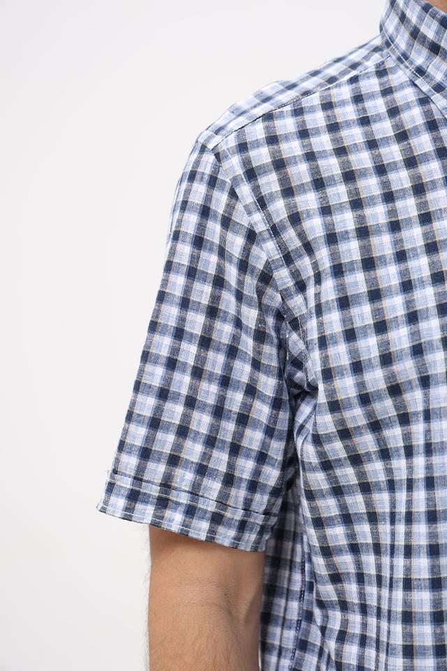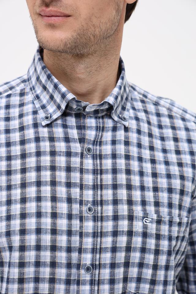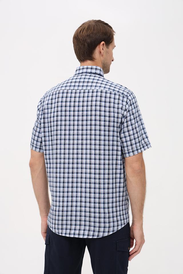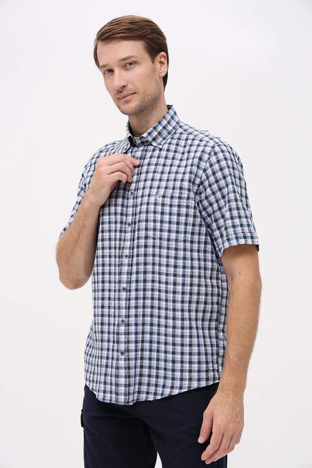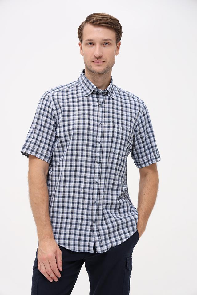 Мужская рубашка Casa Moda синего цвета с коротким рукавом выполнена в классической клетчатой расцветке. Изготовлена из натурального смесового материала, обеспечивающего комфорт и воздухопроницаемость. Состав: лен 55%, хлопок 45%