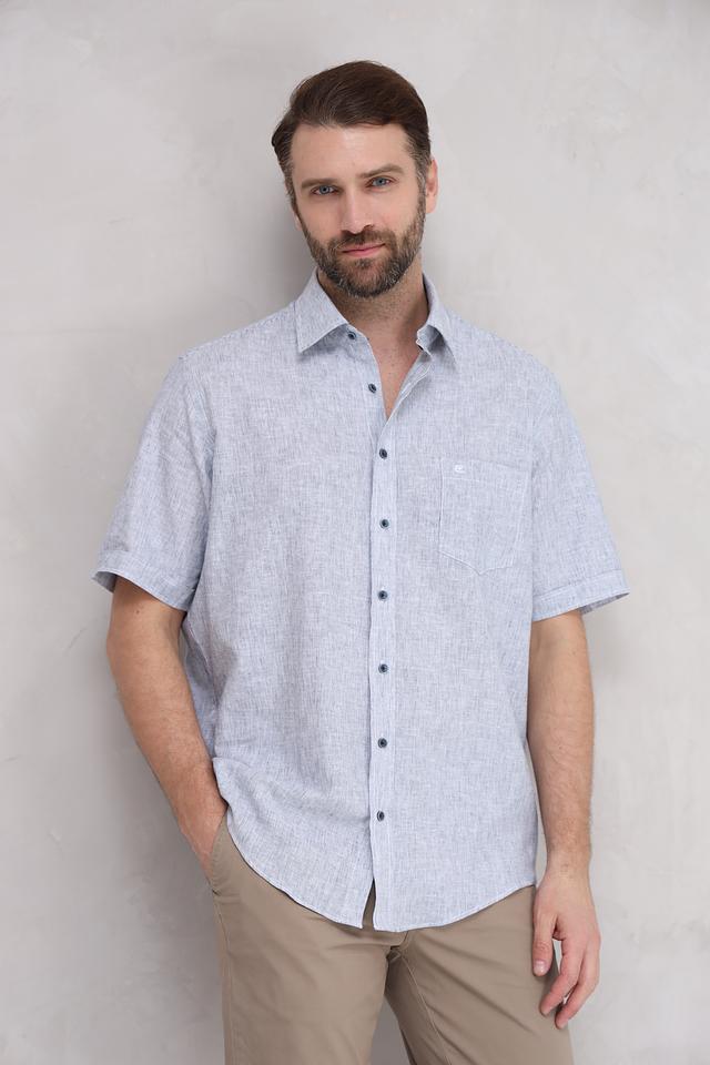 Мужская рубашка Casa Moda голубого цвета с коротким рукавом выполнена из натурального льна с хлопком. Лёгкая и дышащая модель идеально подойдёт для летнего гардероба. Состав: лен 55%, хлопок 45%