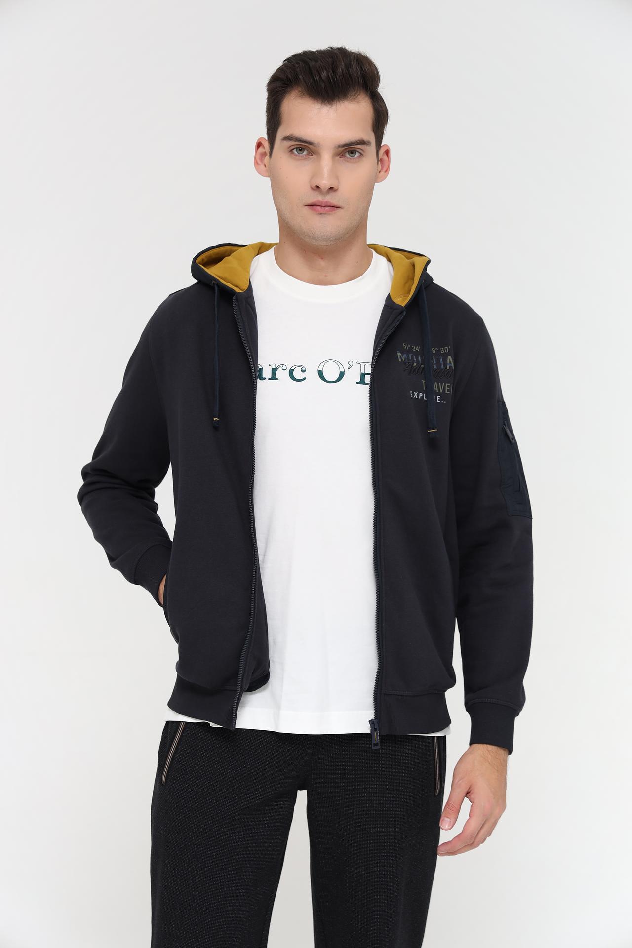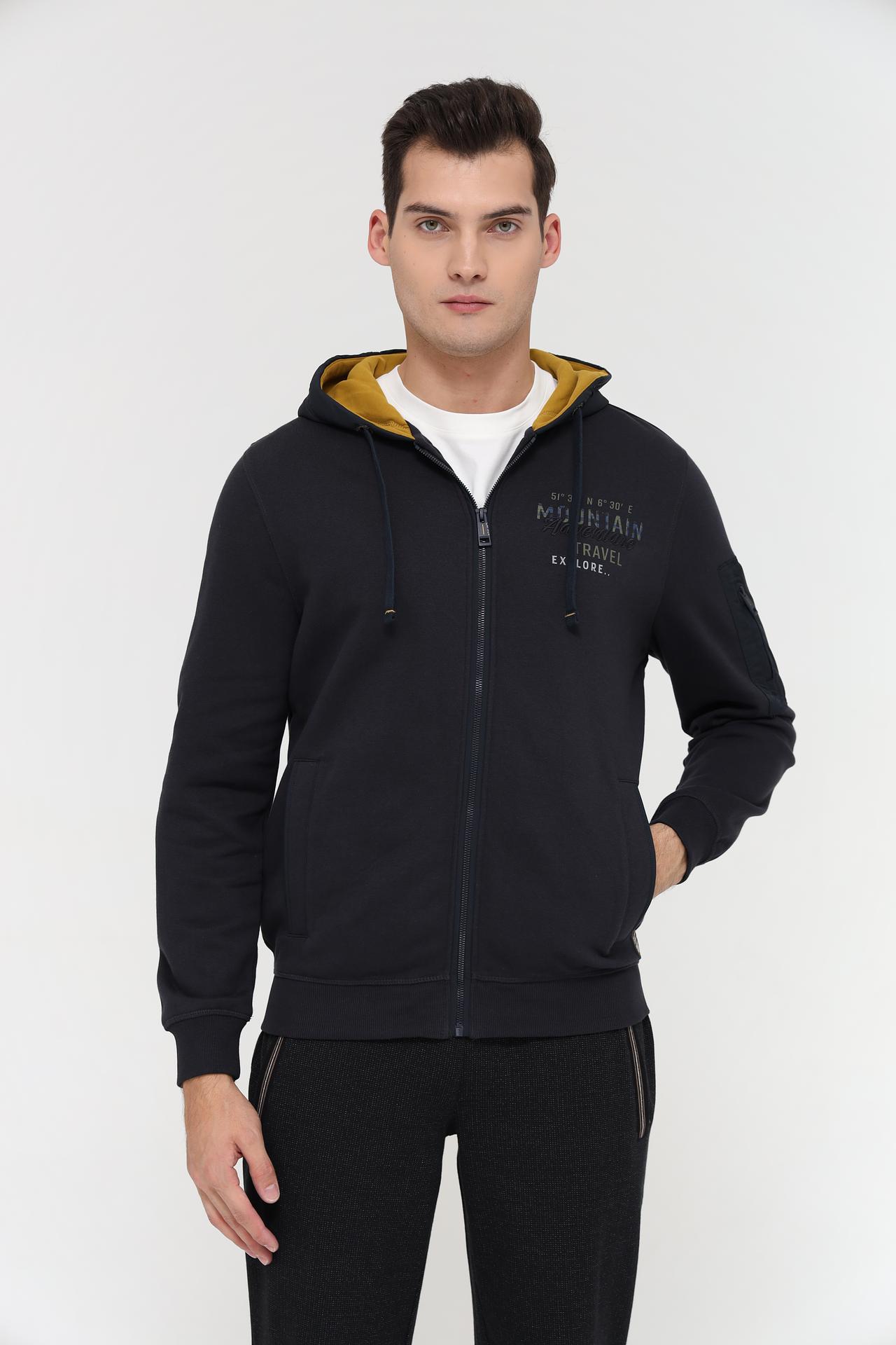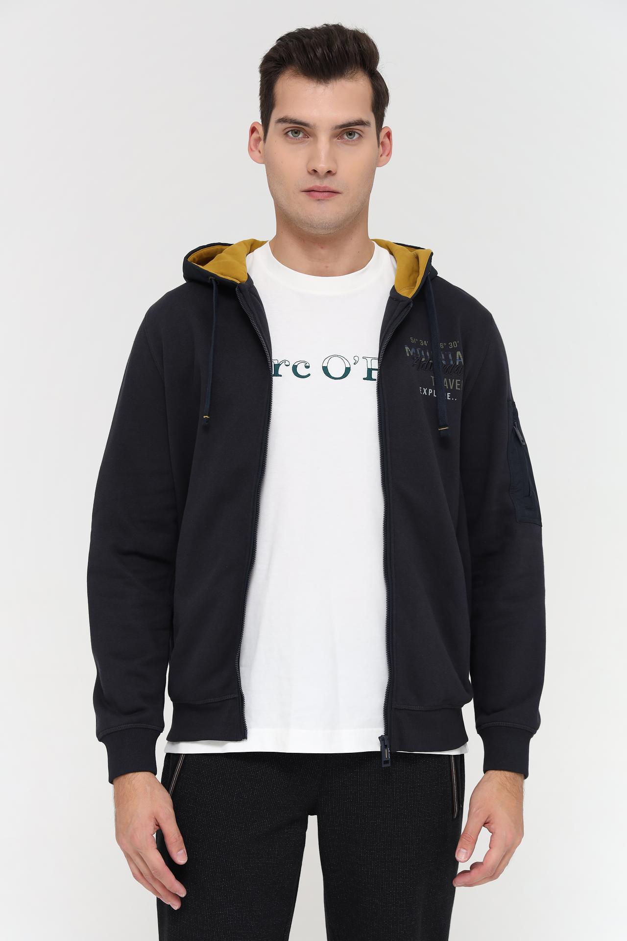 Тёмно-синий кардиган Casa Moda с капюшоном и принтом
