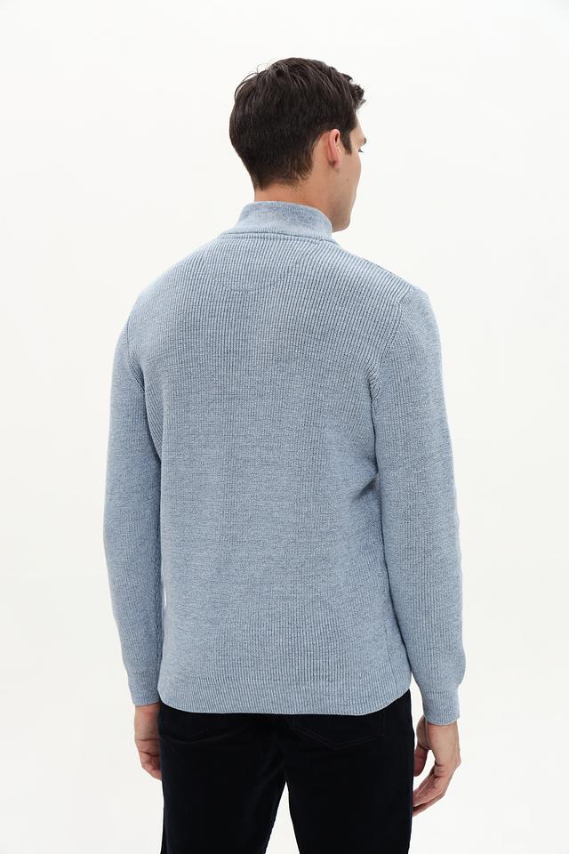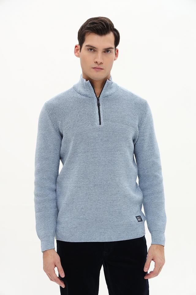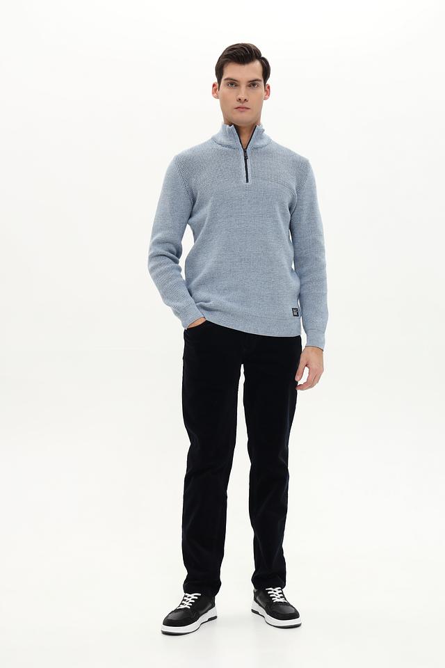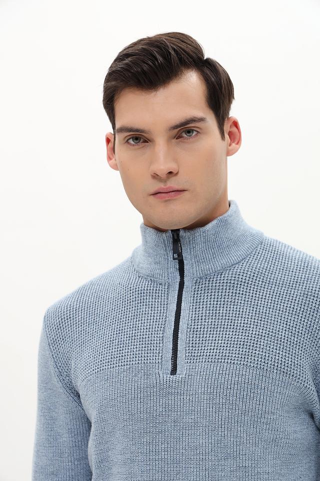 Этот джемпер от Casa Moda станет отличным дополнением к вашему образу. Модель выполнена в приятном голубом цвете и имеет воротник-стойку с короткой молнией.