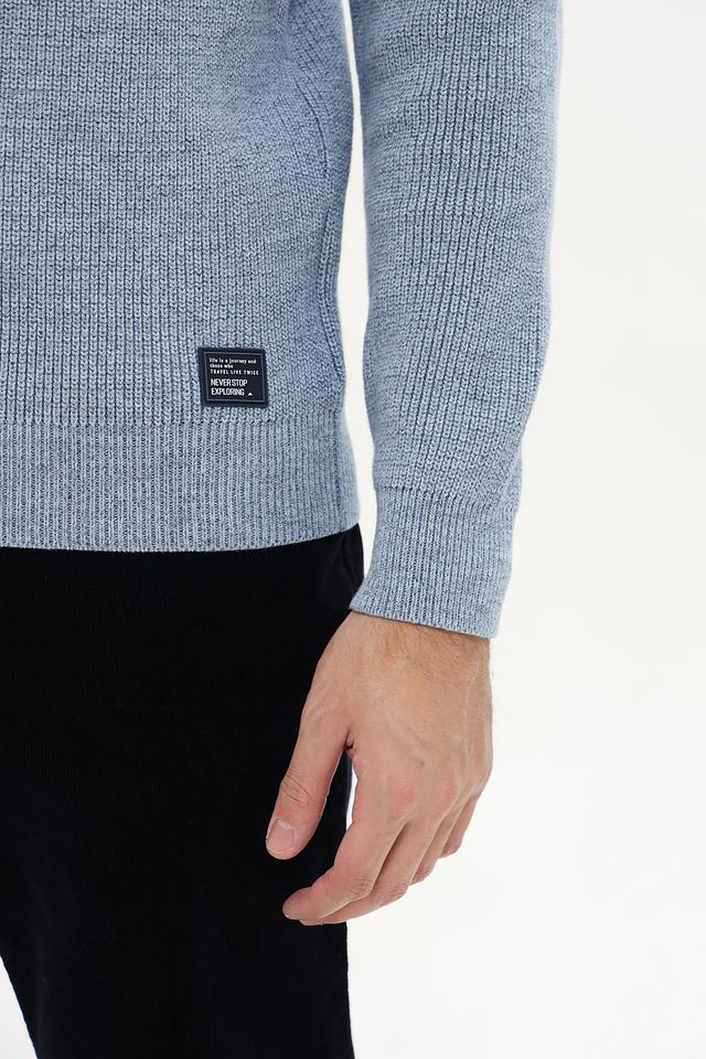 Джемпер имеет классический крой, который подходит для большинства типов фигур. Текстура вязки сочетает в себе гладкие и рельефные участки, что придает изделию интересный вид. На левом рукаве расположен небольшой логотип бренда.