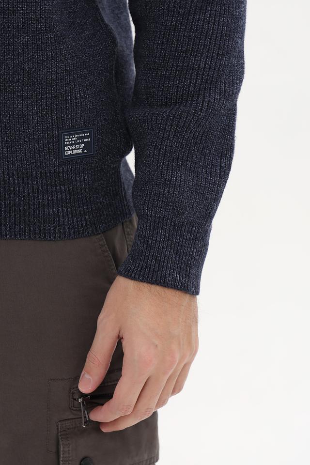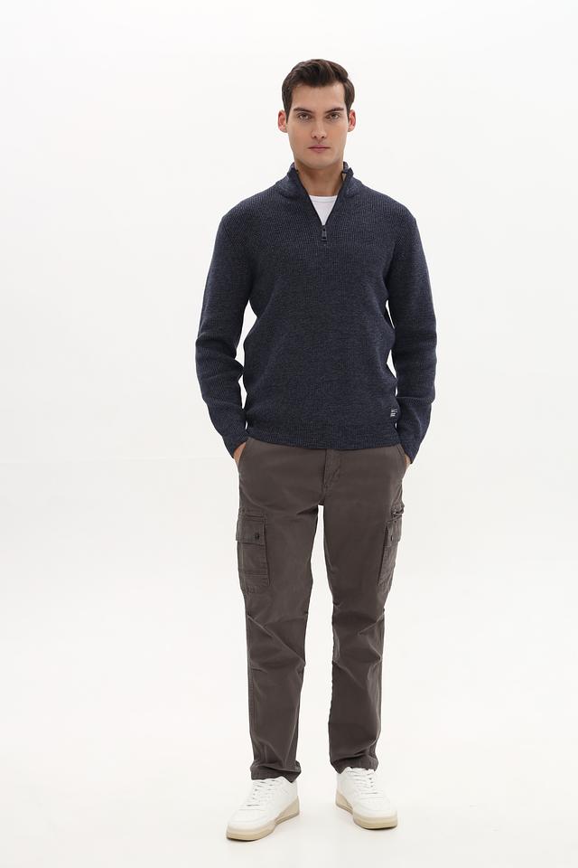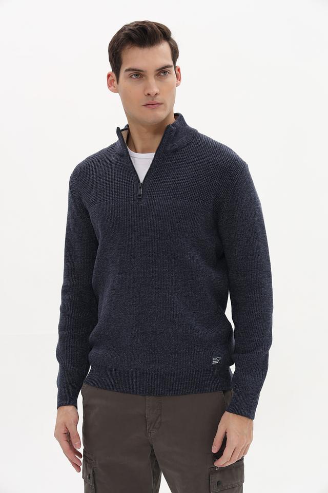 Мужской джемпер Casa Moda синего цвета с воротником-стойкой и короткой молнией. Изготовлен из мягкого трикотажа с текстурной вязкой, что обеспечивает комфорт и стильный внешний вид. Состав: хлопок 62%, полиэстер 28%, полиамид 10%
