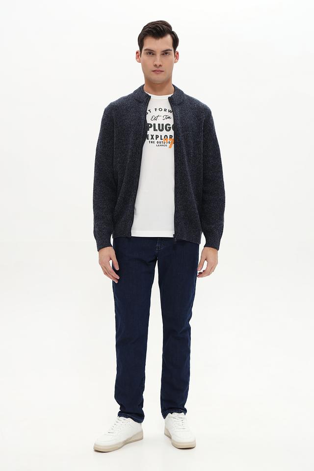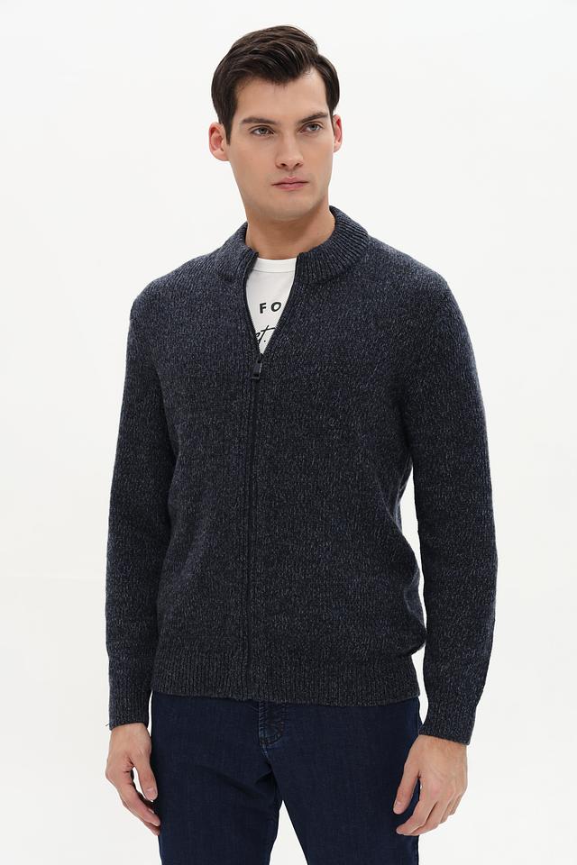 Мужской кардиган Casa Moda тёмно-синего цвета выполнен из мягкой пряжи с добавлением полиамида. Модель на молнии с воротником-стойкой и фактурной вязкой станет отличным дополнением к вашему гардеробу. Состав: шерсть 80%, полиамид 20%
