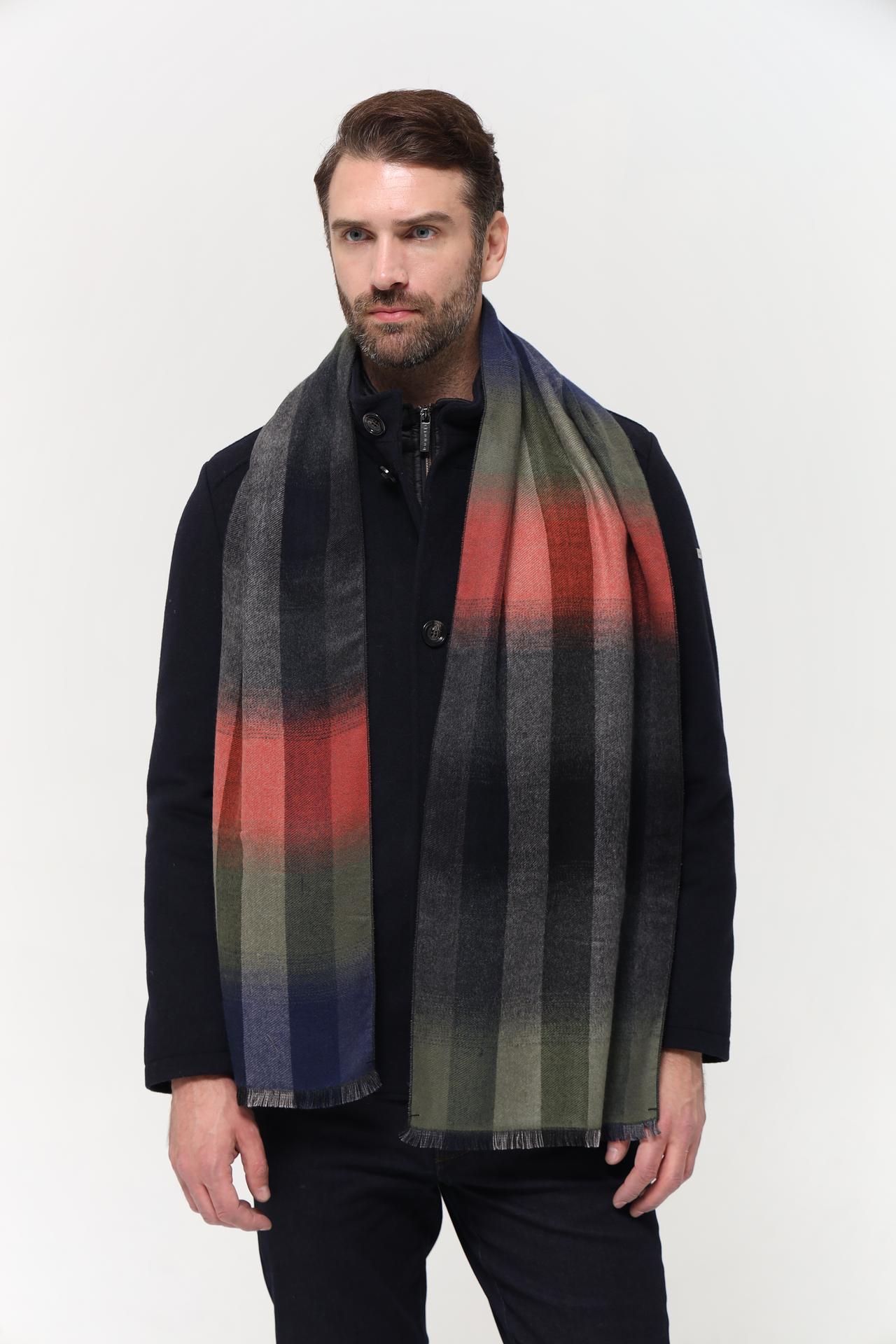- Дизайн: Оригинальный клетчатый узор с плавными переходами цветов создает современный и эффектный вид. Шарф украшен бахромой по краям, добавляя изделию завершенности.