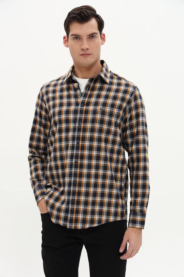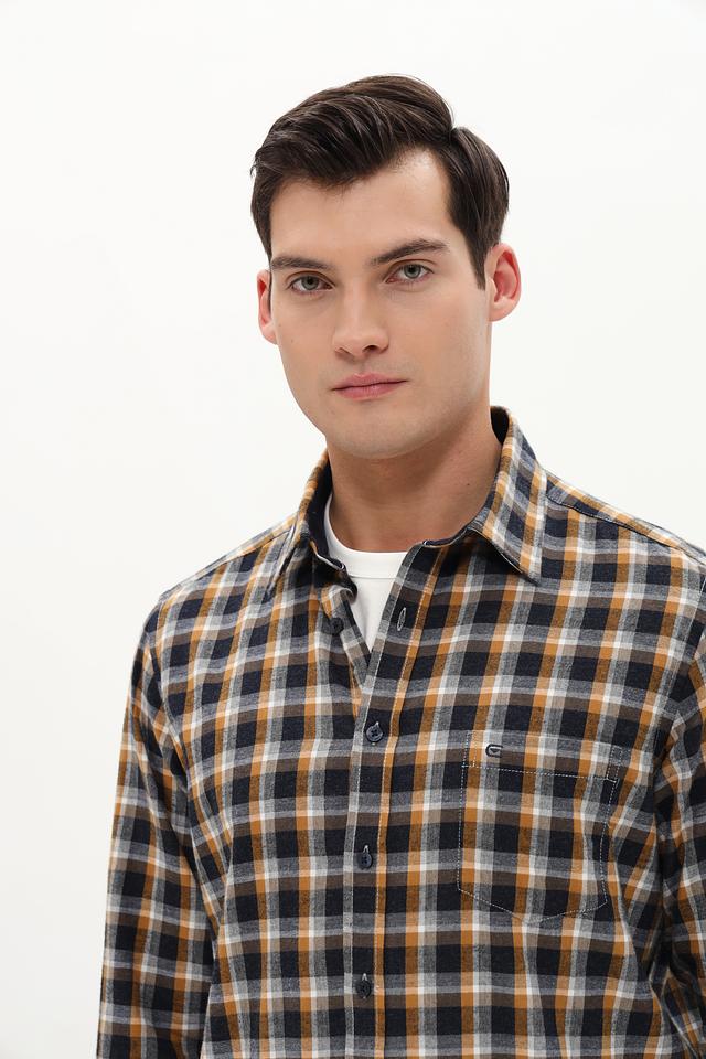 Мужская рубашка Casa Moda сине-горчичного цвета в классическую клетку. Изготовлена из 100% хлопка, обеспечивающего комфорт и воздухопроницаемость. Отличный выбор для создания повседневного образа. Состав: хлопок 100%