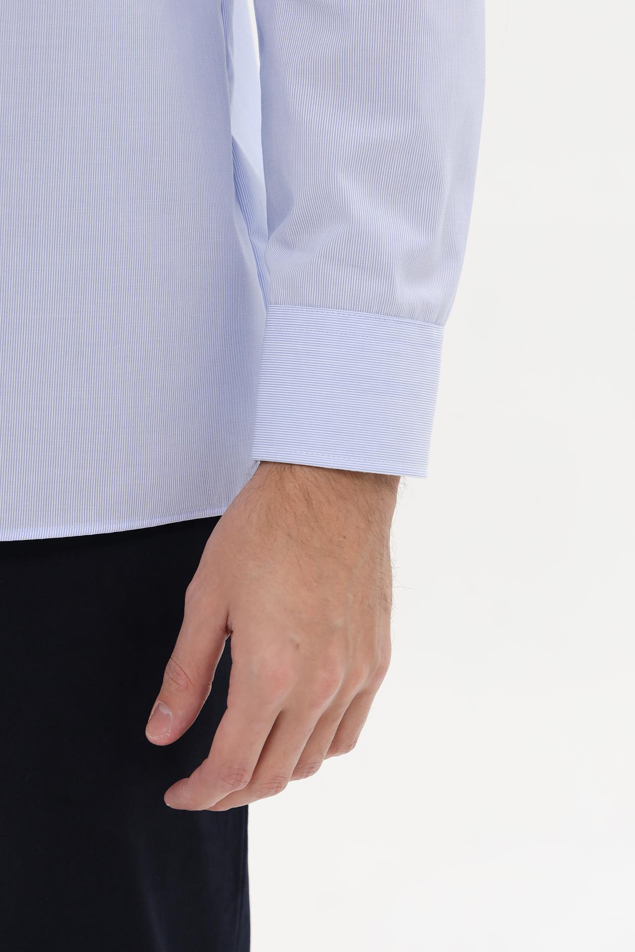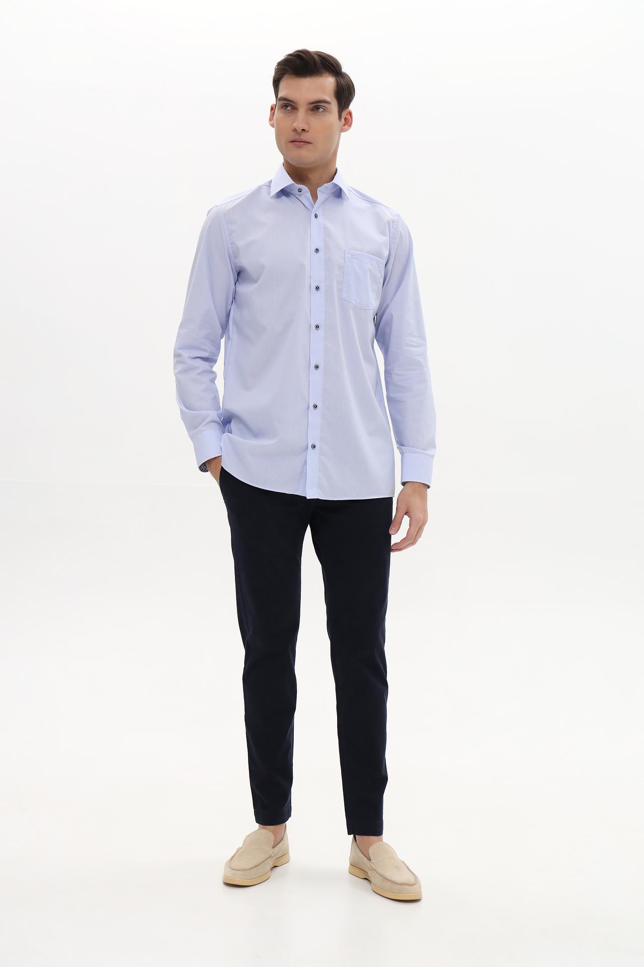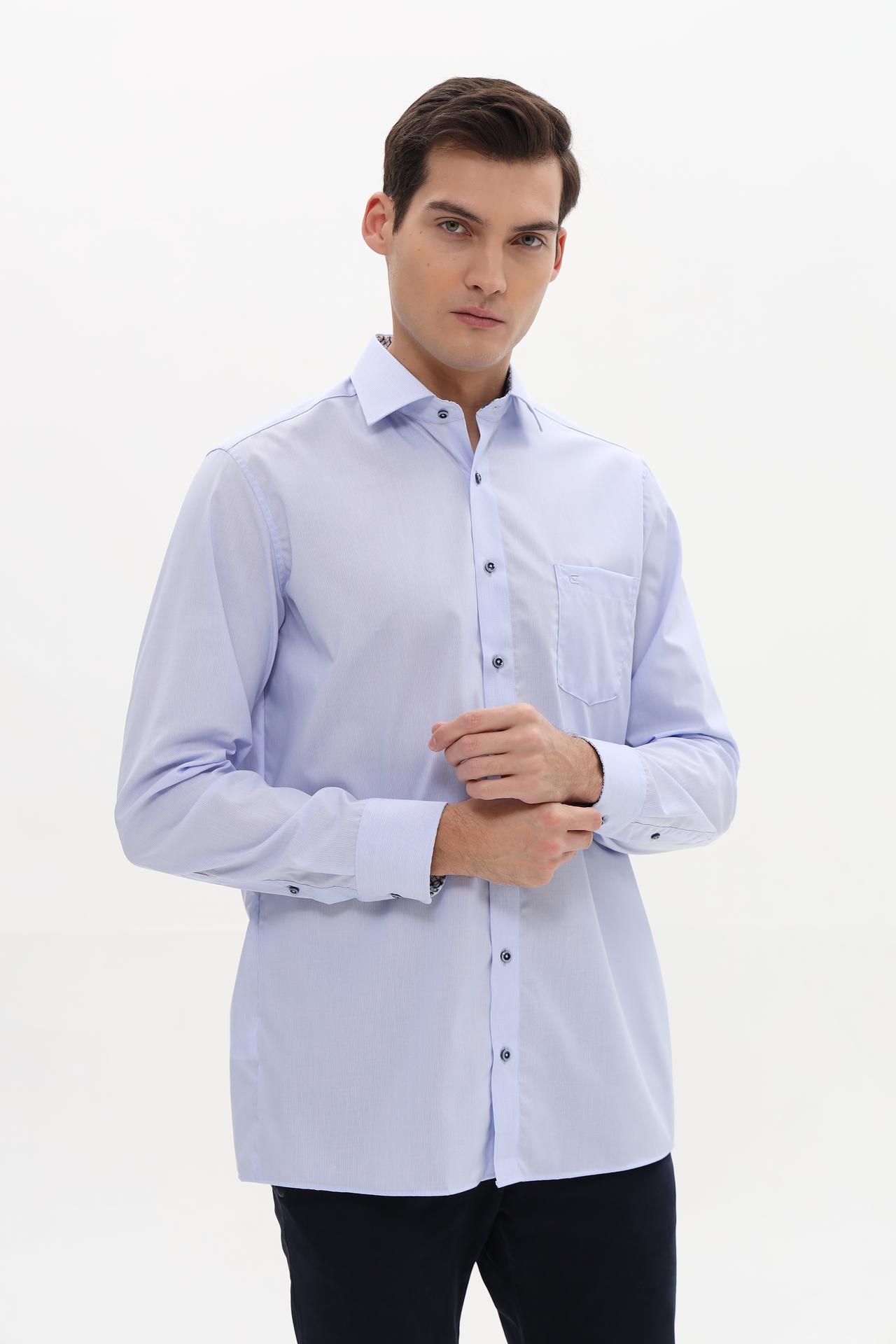 Мужская рубашка Casa Moda с длинным рукавом выполнена из 100% хлопка, обеспечивая исключительный комфорт и дышащие свойства. Классический крой и нежный голубой оттенок в тонкую микрополоску делают ее идеальным элементом как для строгого делового образа, так и для элегантного повседневного стиля.
