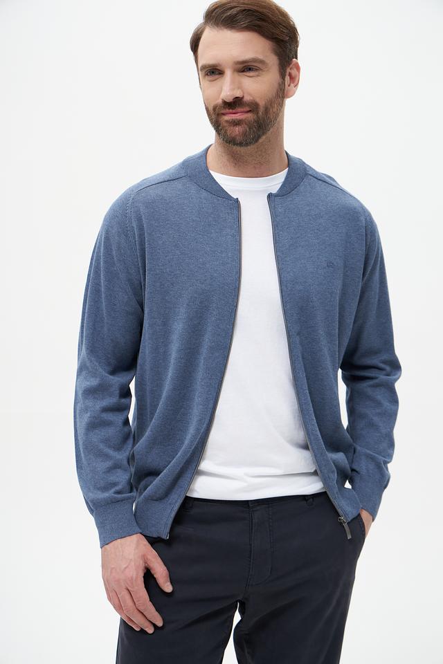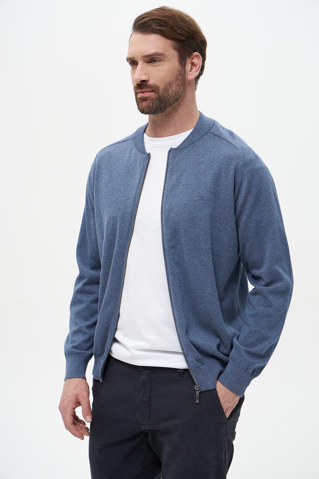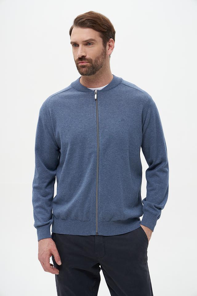 Мужской кардиган Casa Moda синего цвета с застёжкой на молнии – это стильное и комфортное решение для прохладной погоды. Изготовлен из 100% хлопка, обеспечивающего мягкость и удобство в носке. Состав: хлопок 100%