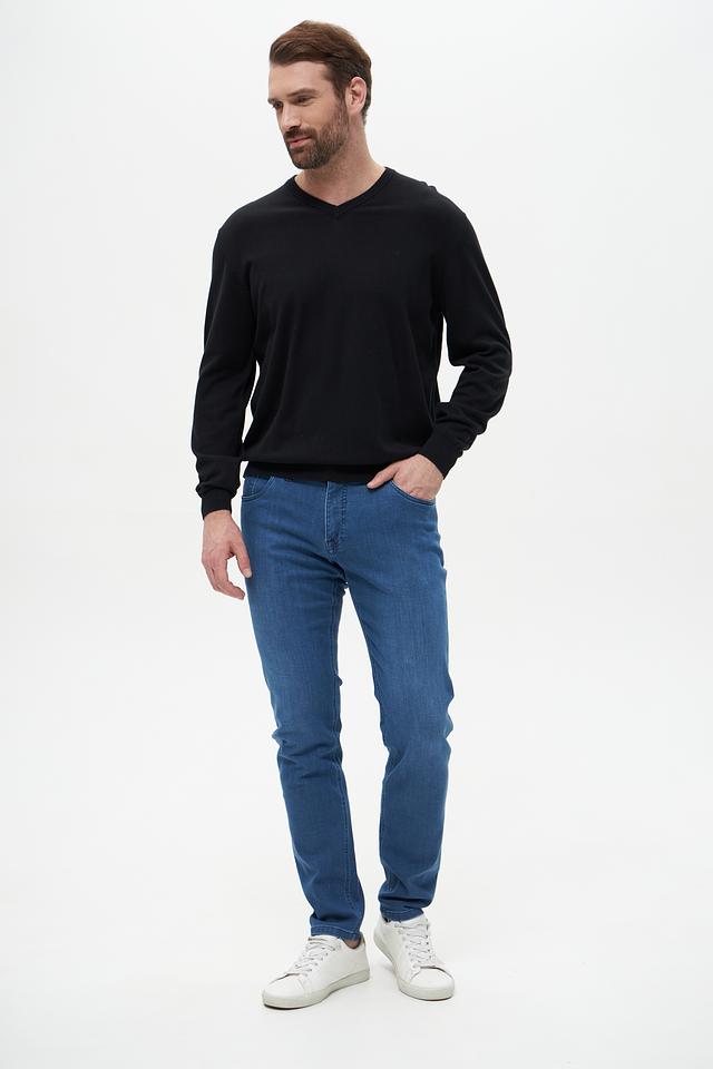 Мужской джемпер от Casa Moda выполнен в классическом черном цвете и имеет V-образный вырез. Эта модель станет отличным дополнением к вашему повседневному образу, сочетаясь с джинсами, брюками и другой одеждой.