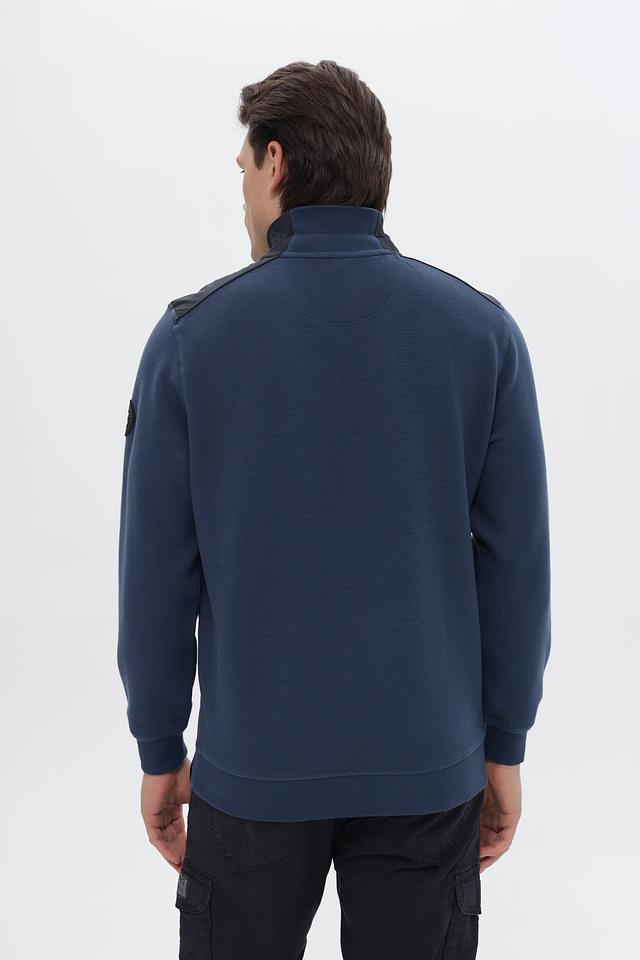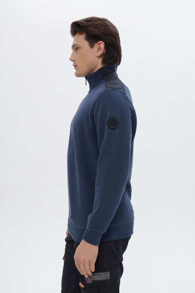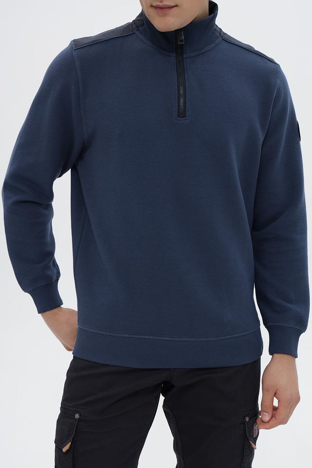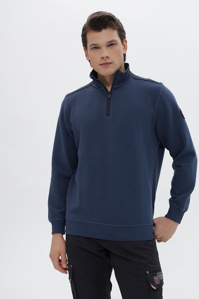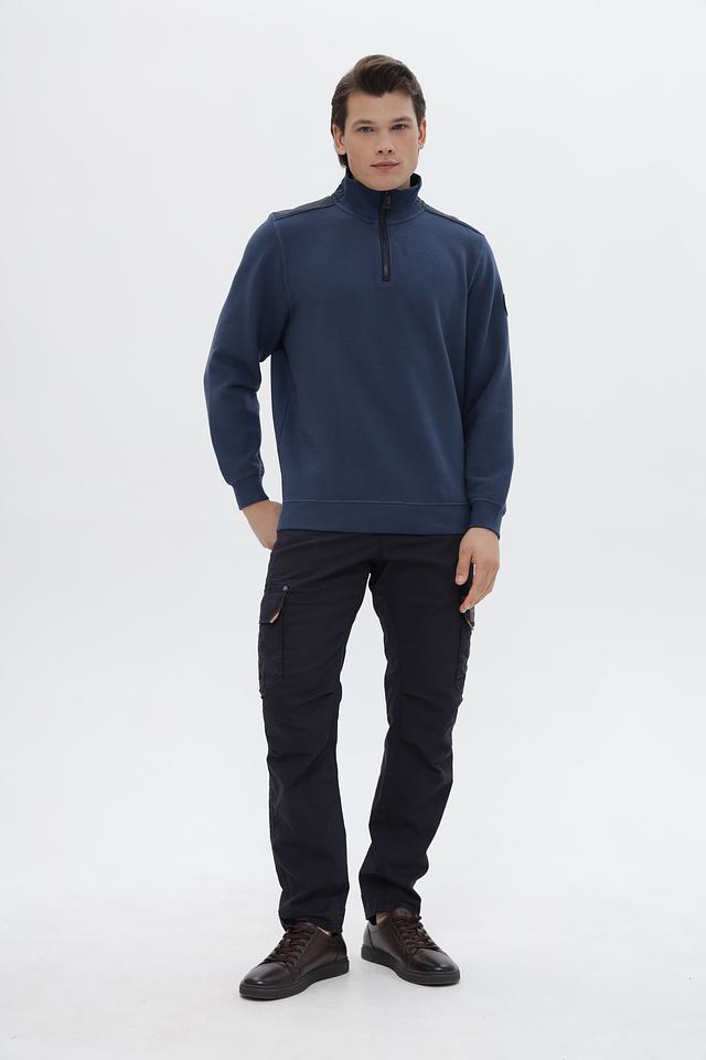 Синий джемпер от Casa Moda с короткой молнией на горловине – удобная и стильная модель для повседневной носки. Изготовлен из мягкого хлопка с добавлением эластана для комфорта и сохранения формы. Состав: хлопок 95%, эластан 5%