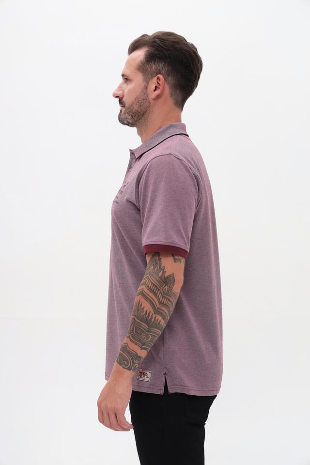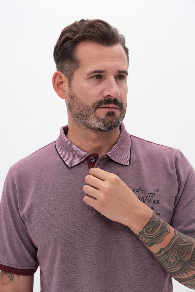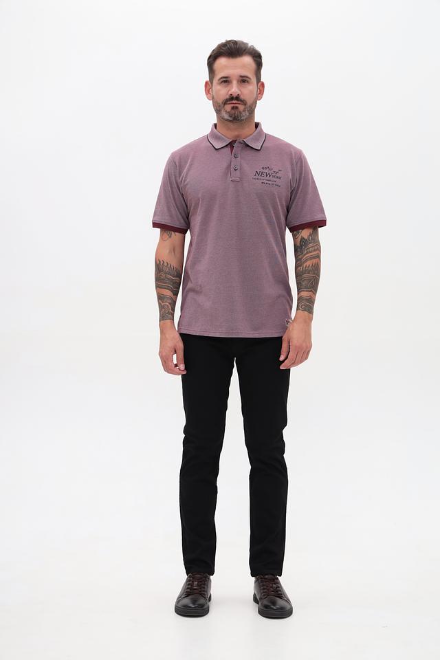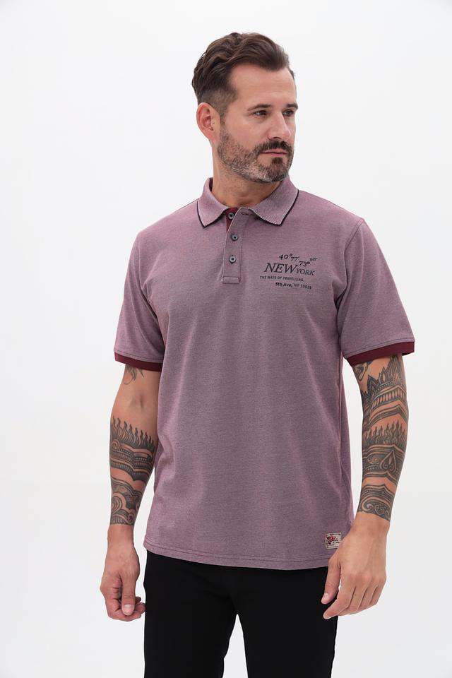 Мужское поло Casa Moda лавандового цвета с принтом "New York" и контрастной отделкой по горловине и рукавам. Изготовлено из сочетания хлопка и полиэстера, обеспечивающего комфорт и практичность. Состав: полиэстер 50%, хлопок 50%