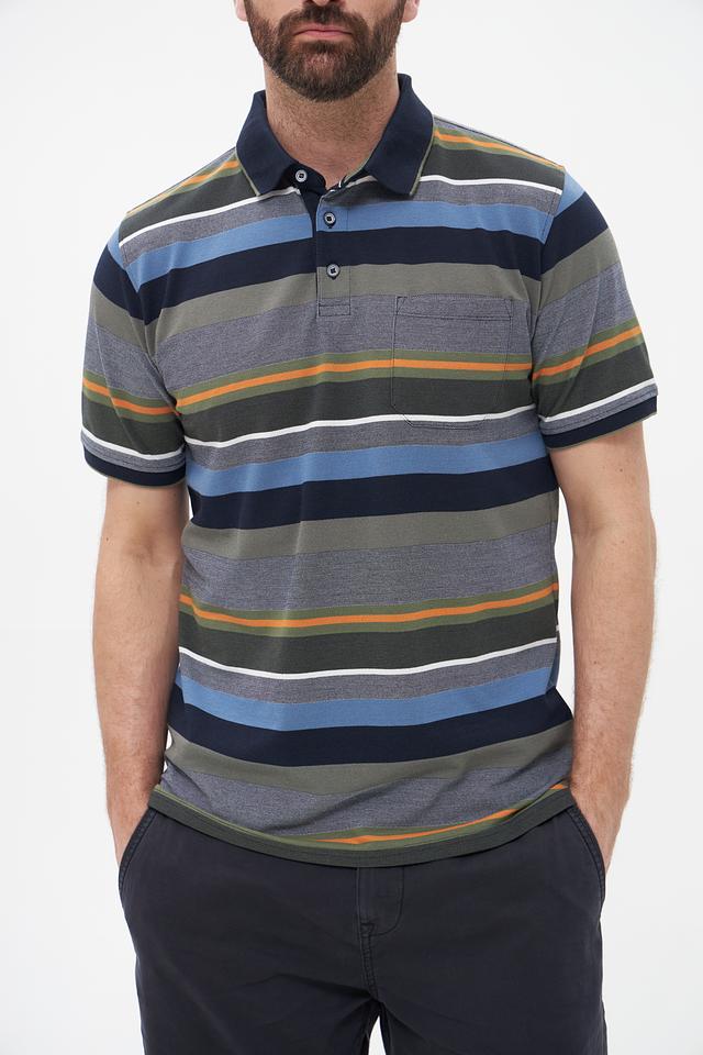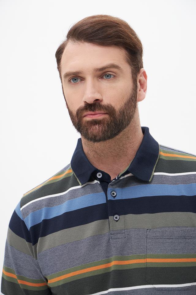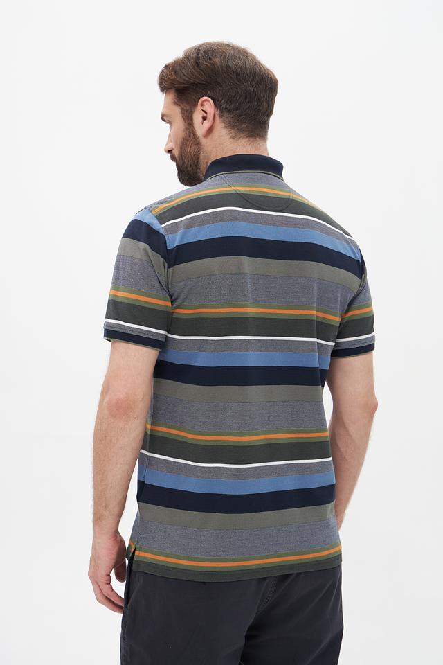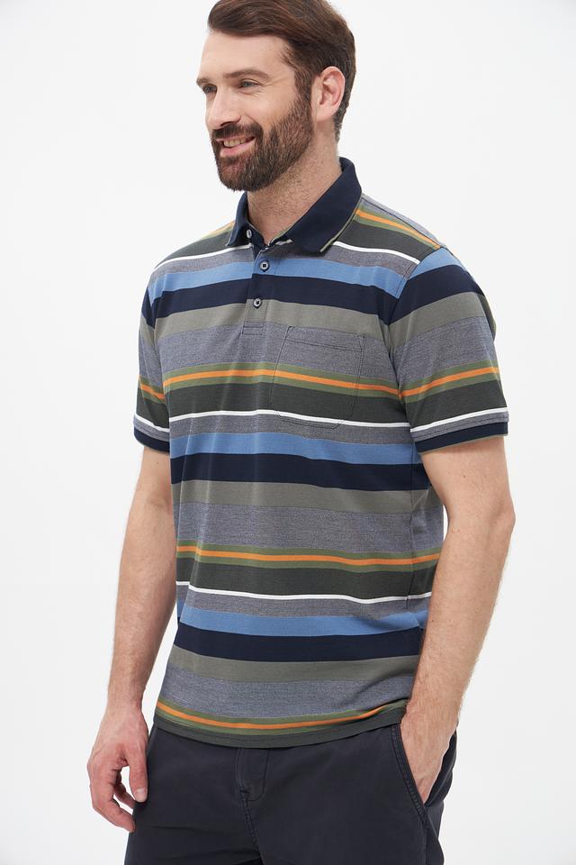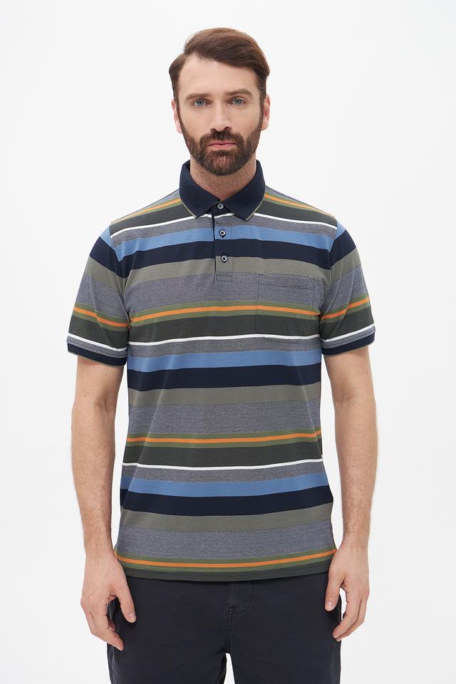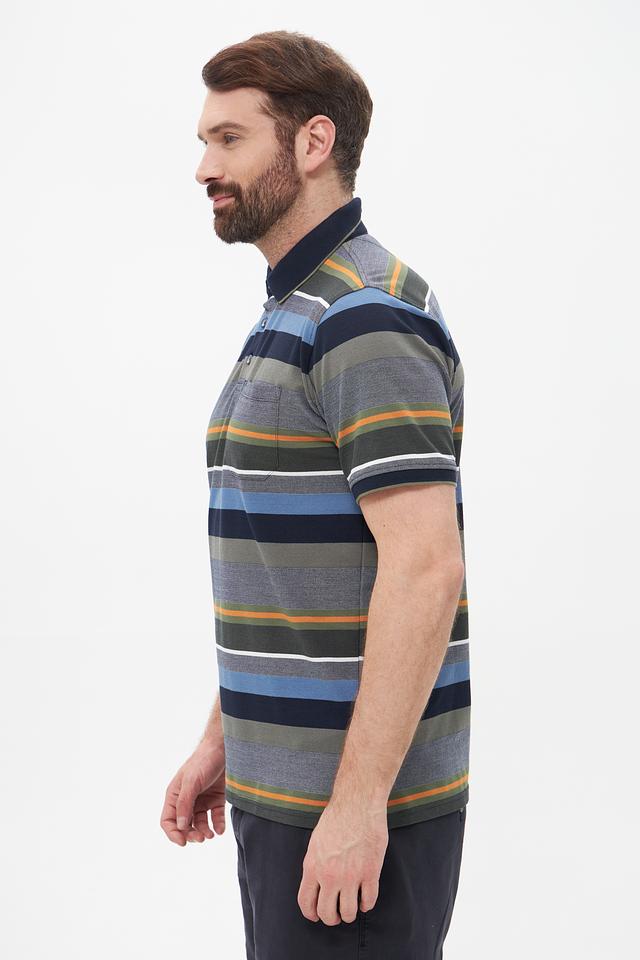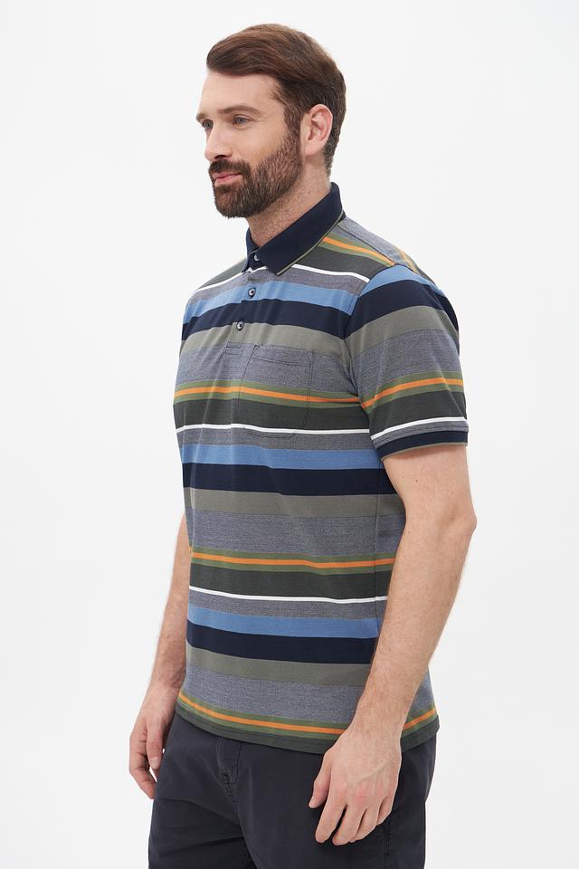 Мужское поло от Casa Moda – это стильное и удобное решение для создания повседневного образа. Модель выполнена в яркой горизонтальной полоске, сочетающей в себе оттенки синего, серого, оливкового и горчичного.