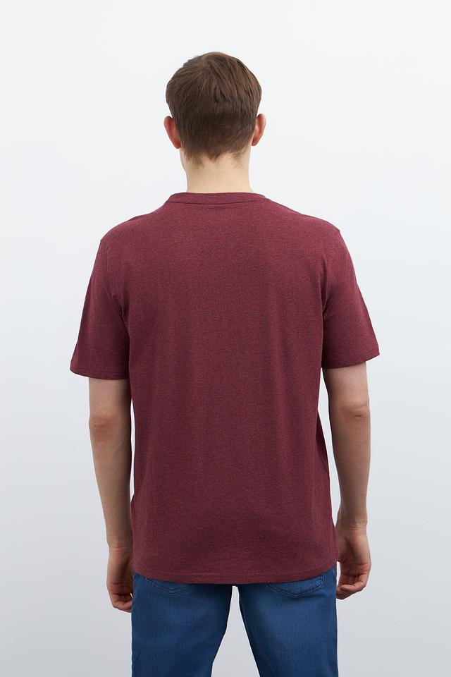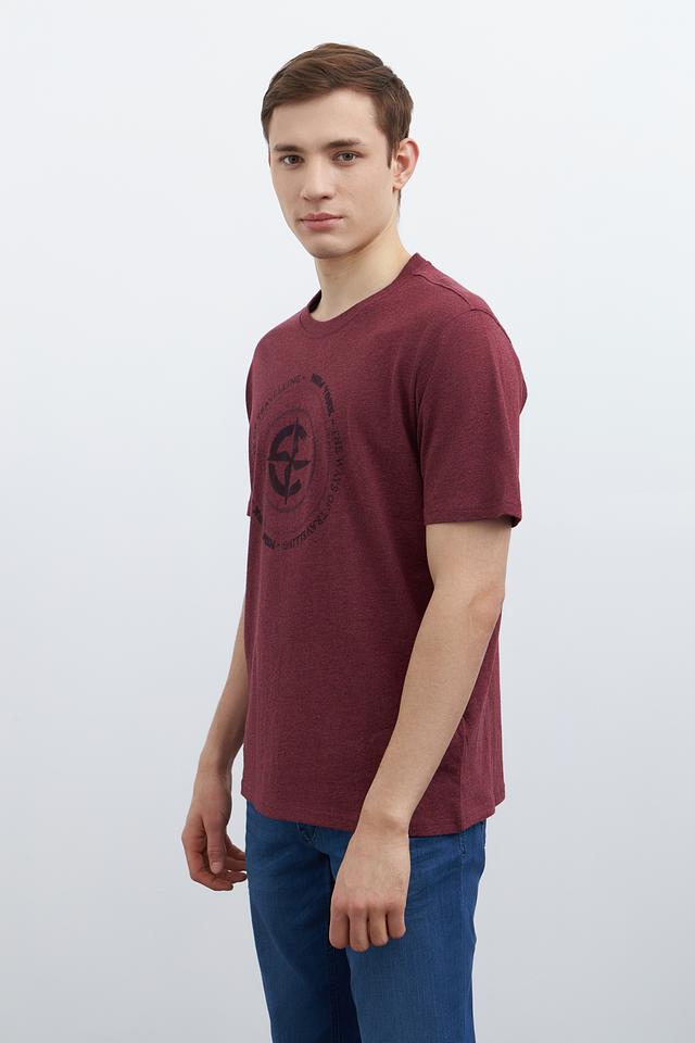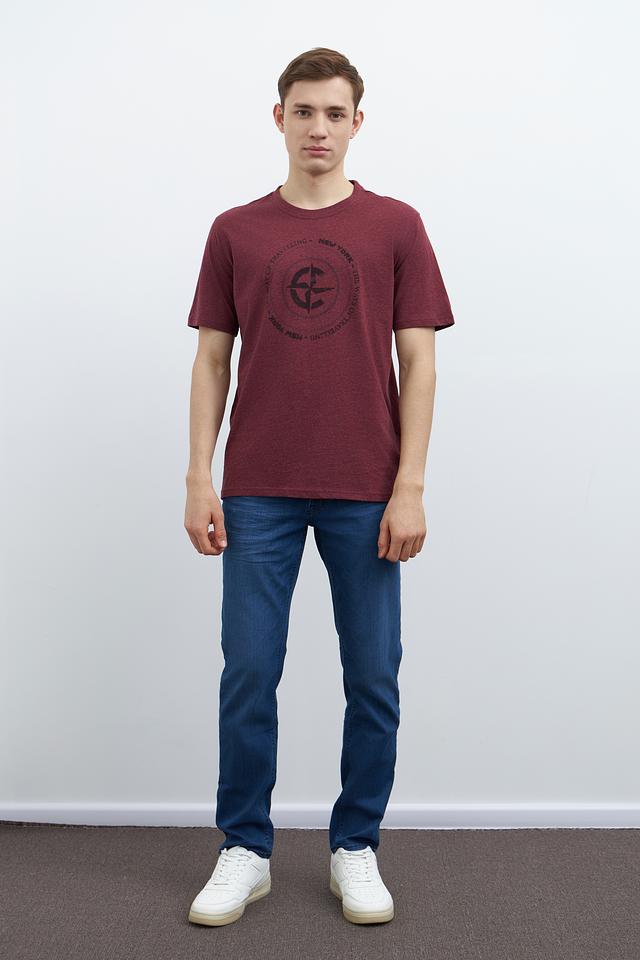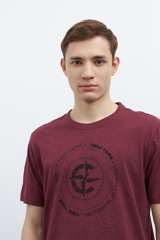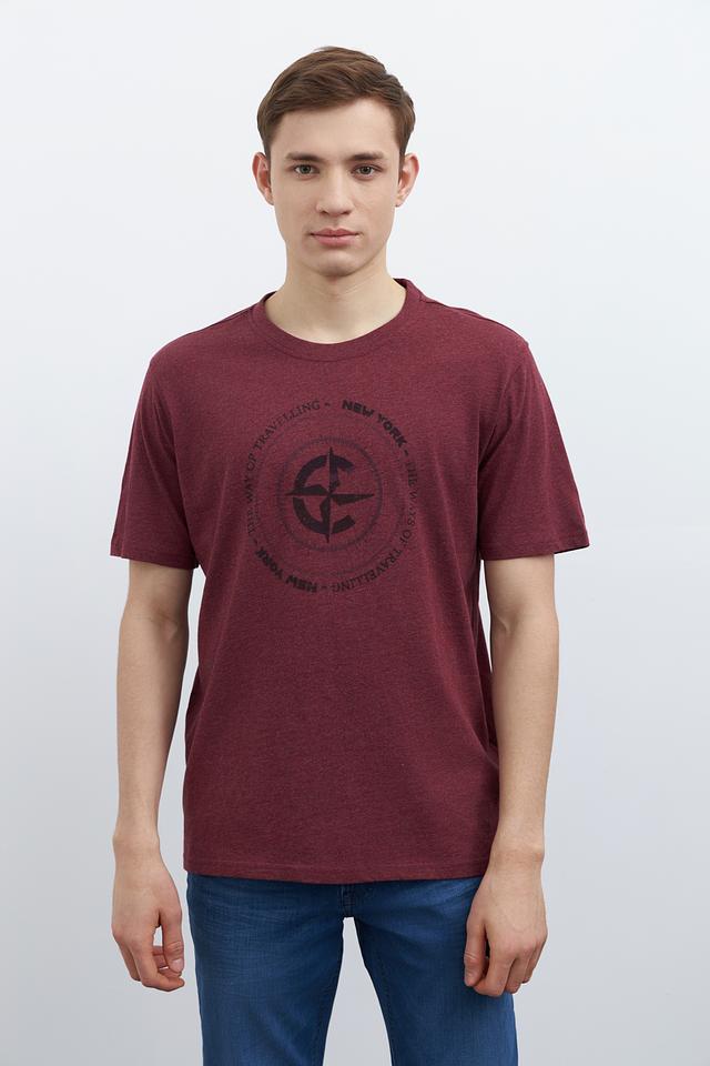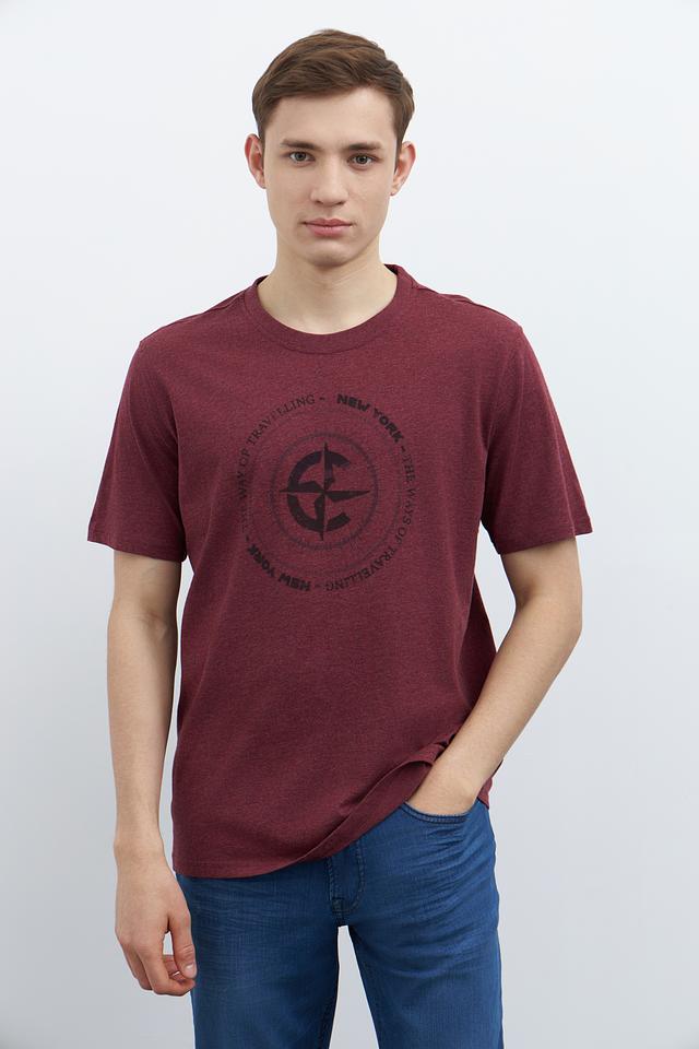 Мужская футболка Casa Moda бордового цвета с круглым вырезом и оригинальным принтом на передней части. Изготовлена из 100% хлопка, обеспечивающего комфорт и воздухопроницаемость. Состав: хлопок 100%