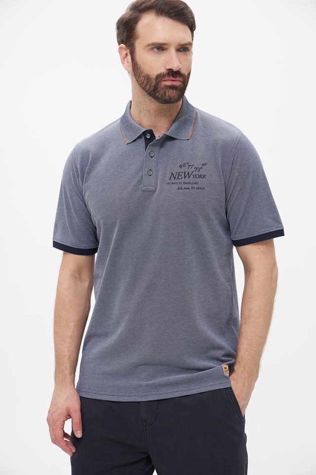 Стильное поло Casa Moda серого цвета с оригинальным принтом "New York" станет отличным дополнением к вашему гардеробу. Изготовлено из сочетания хлопка и полиэстера, обеспечивающего комфорт и практичность. Состав: полиэстер 50%, хлопок 50%
