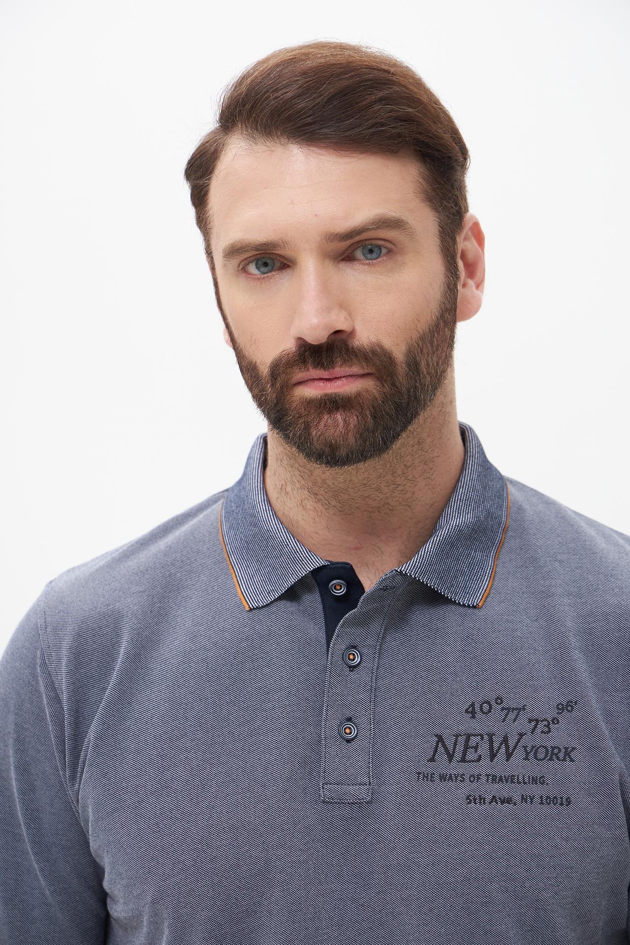 Стильное поло от Casa Moda – идеальный выбор для современного мужчины. Модель выполнена из смесовой ткани, сочетающей натуральный хлопок и прочный полиэстер, что обеспечивает комфорт и долговечность. Классический крой с отложным воротником и планкой на пуговицах создает элегантный образ. Оригинальный принт с надписью "New York" добавляет изделию актуальности и характера. Манжеты и воротник контрастного темно-синего цвета с оранжевой отстрочкой подчеркивают детали.