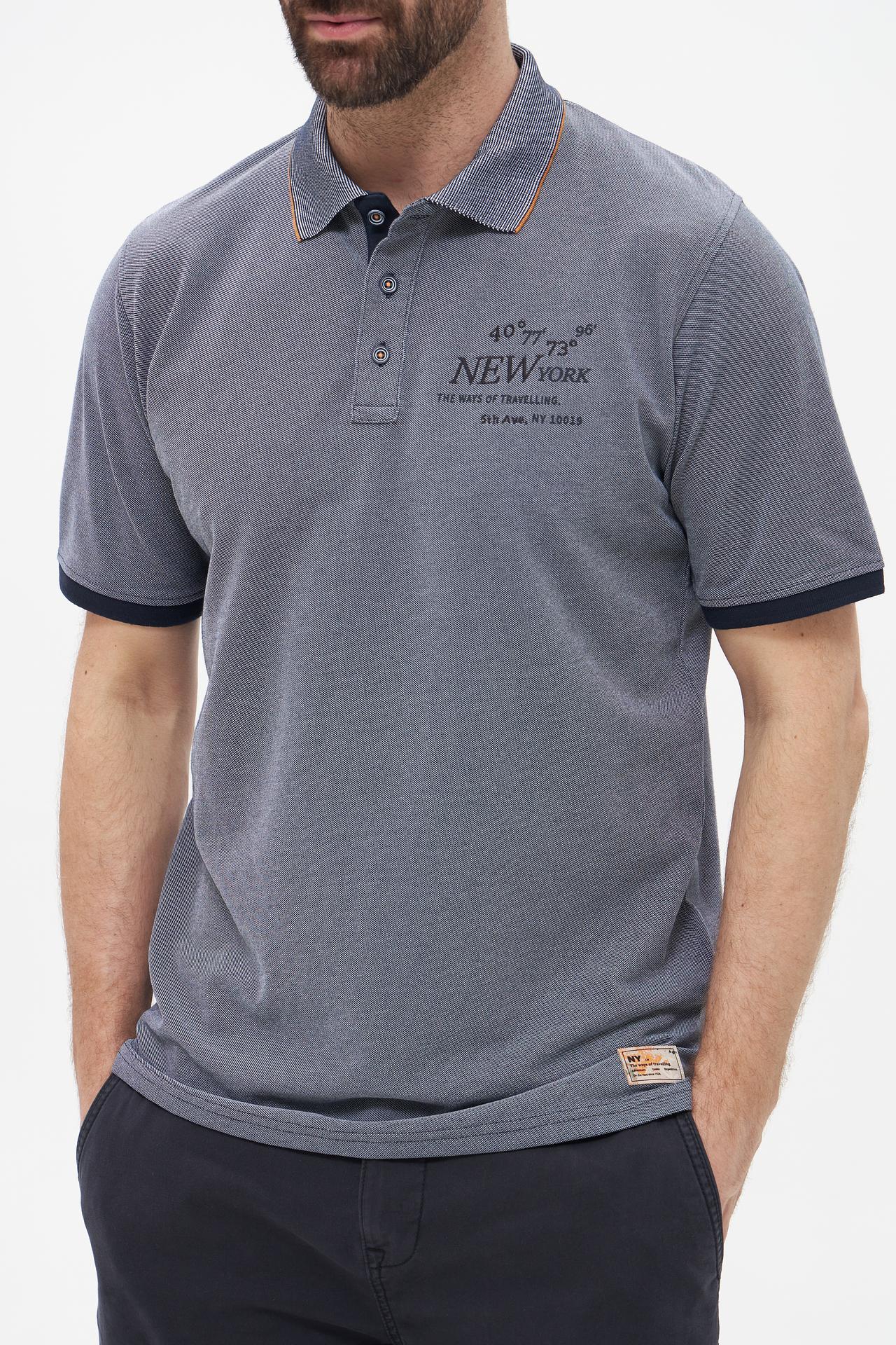 - Дизайн: Классическое поло с коротким рукавом. Модель украшена принтом "New York" и контрастными элементами на воротнике и манжетах, что делает ее выразительной и модной.