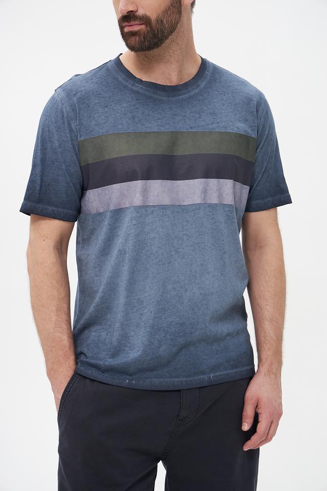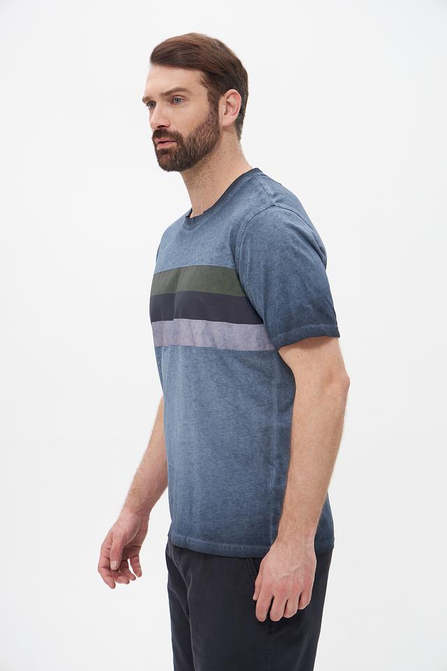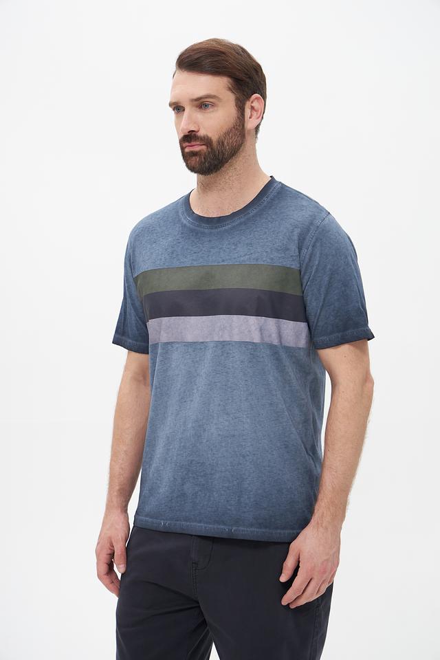 Эта мужская футболка от Casa Moda станет отличным дополнением к вашему образу. Футболка выполнена в сером цвете с горизонтальными полосами оливкового, серого и темно-синего оттенков, что придает ей современный и динамичный вид.