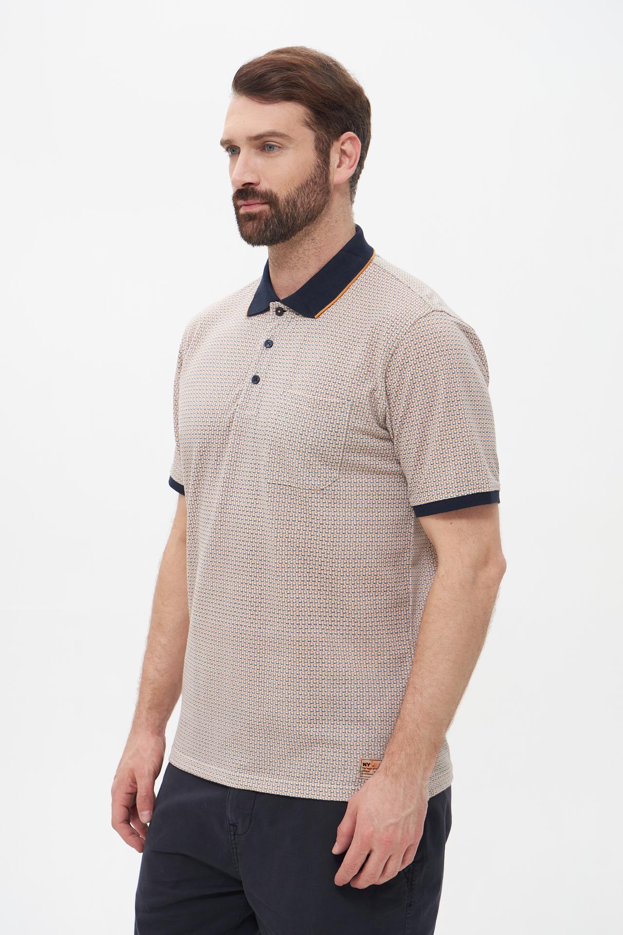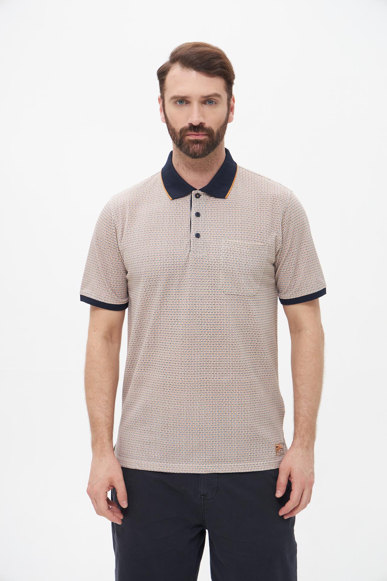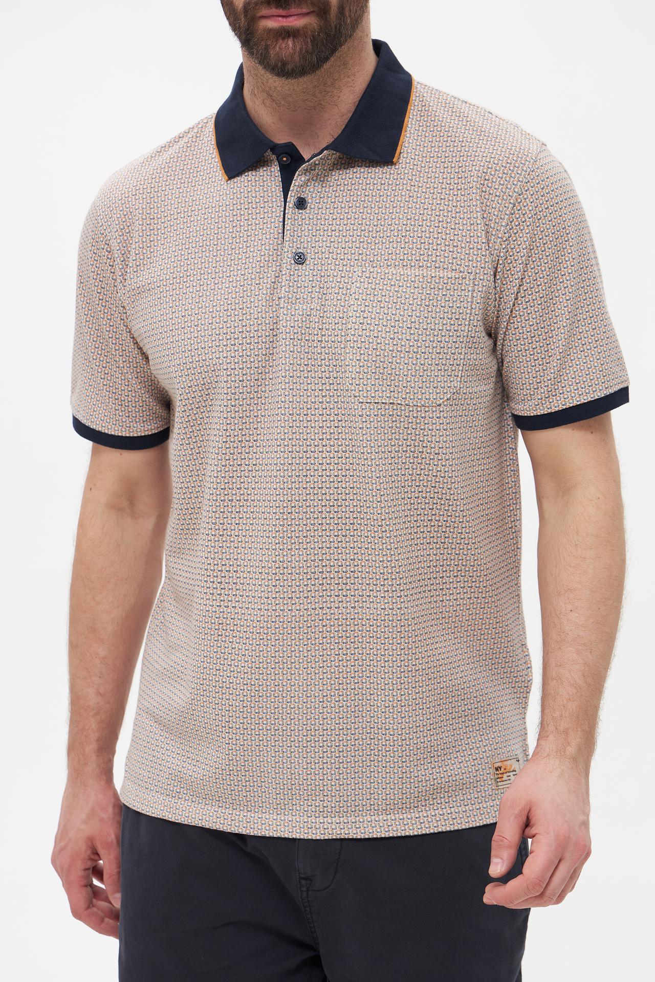 Поло Casa Moda бежевое с принтом и нагрудным карманом