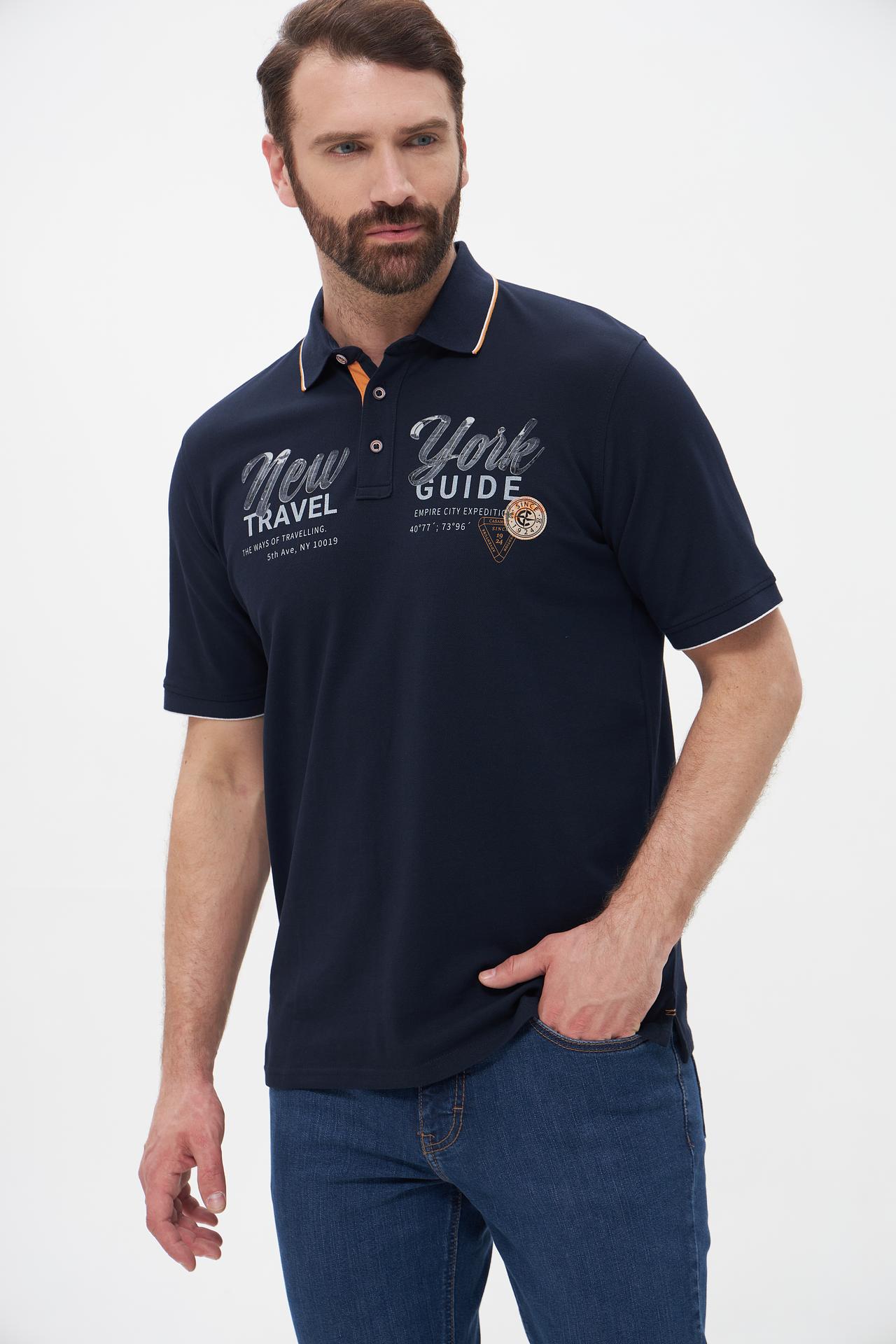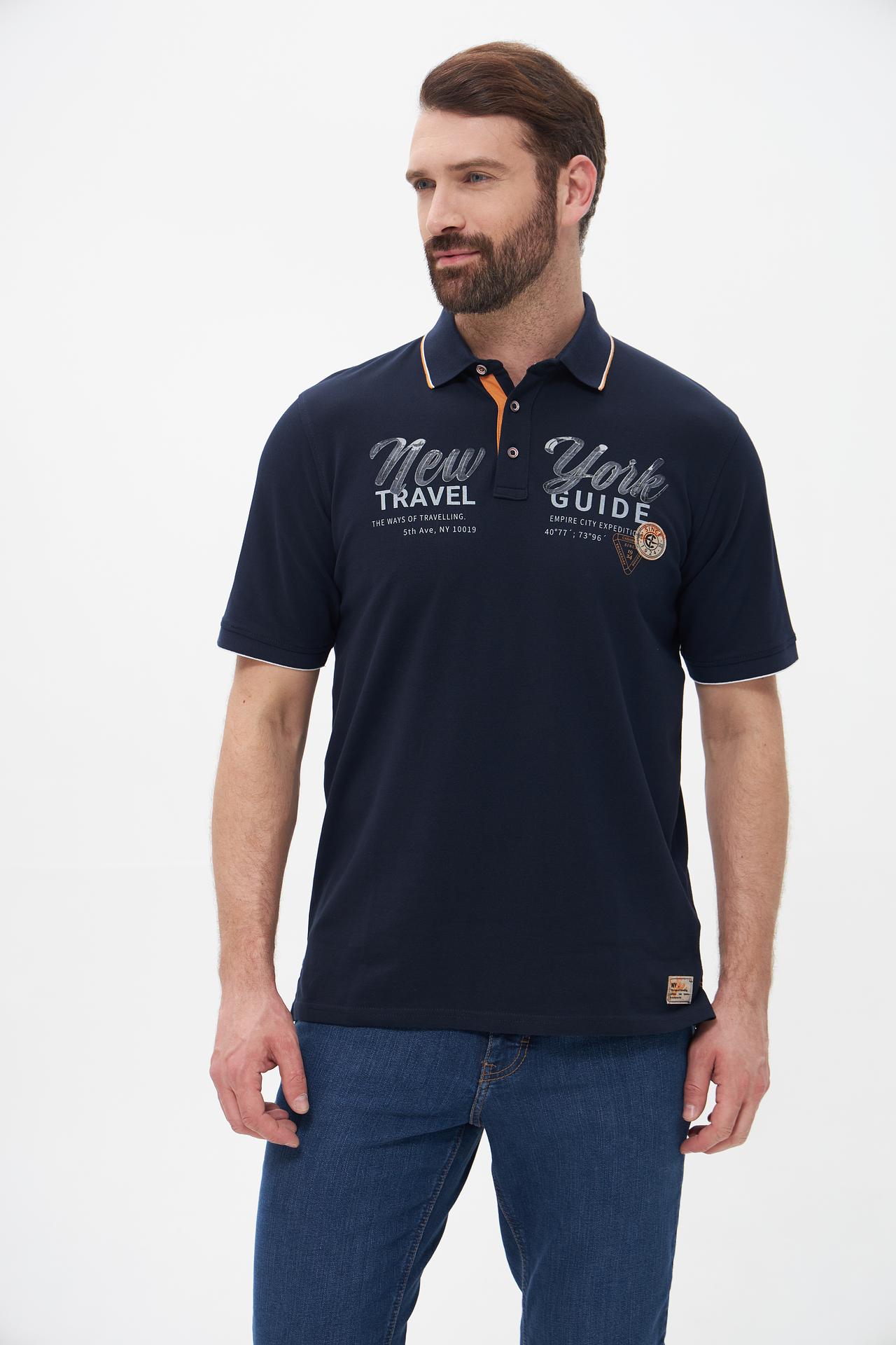 Поло Casa Moda синее с принтом