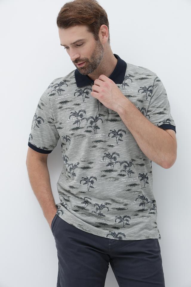Серый мужской поло Casa Moda с оригинальным принтом пальм – стильное и комфортное решение для повседневного образа. Изготовлено из 100% хлопка, обеспечивающего приятные ощущения и воздухопроницаемость. Состав: хлопок 100%