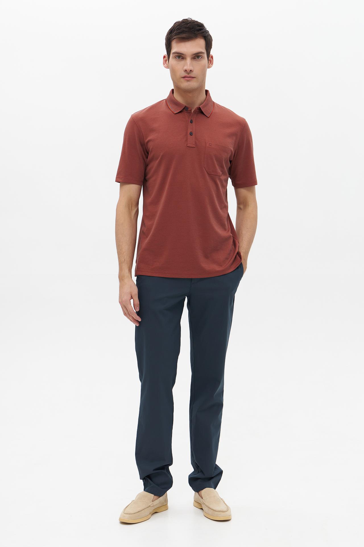 Элегантное поло от Casa Moda, выполненное из качественной смесовой ткани (45% полиэстер, 55% хлопок), сочетает в себе комфорт и стиль. Классический дизайн с отложным воротником и застежкой на пуговицы, а также нагрудный карман делают эту модель универсальной для создания как повседневных, так и более формальных образов. Поло идеально подойдет для мужчин, ценящих комфорт и безупречный внешний вид.