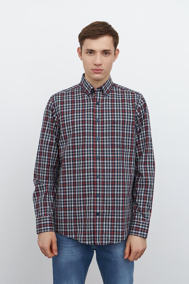 Мужская рубашка Casa Moda красного и синего цвета в классическую клетку. Изготовлена из 100% хлопка, обеспечивающего комфорт и воздухопроницаемость. Состав: хлопок 100%