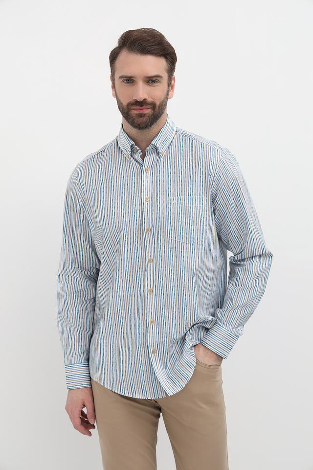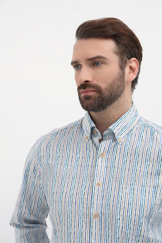 Мужская рубашка Casa Moda голубого цвета с вертикальной полоской. Изготовлена из 100% хлопка, обеспечивающего комфорт и воздухопроницаемость. Отличный выбор для создания стильного повседневного образа. Состав: хлопок 100%