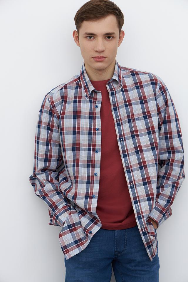 Мужская рубашка Casa Moda сине-красного цвета с классическим клетчатым узором. Изготовлена из 100% хлопка, обеспечивающего комфорт и воздухопроницаемость. Отличный выбор для создания повседневного образа. Состав: хлопок 100%