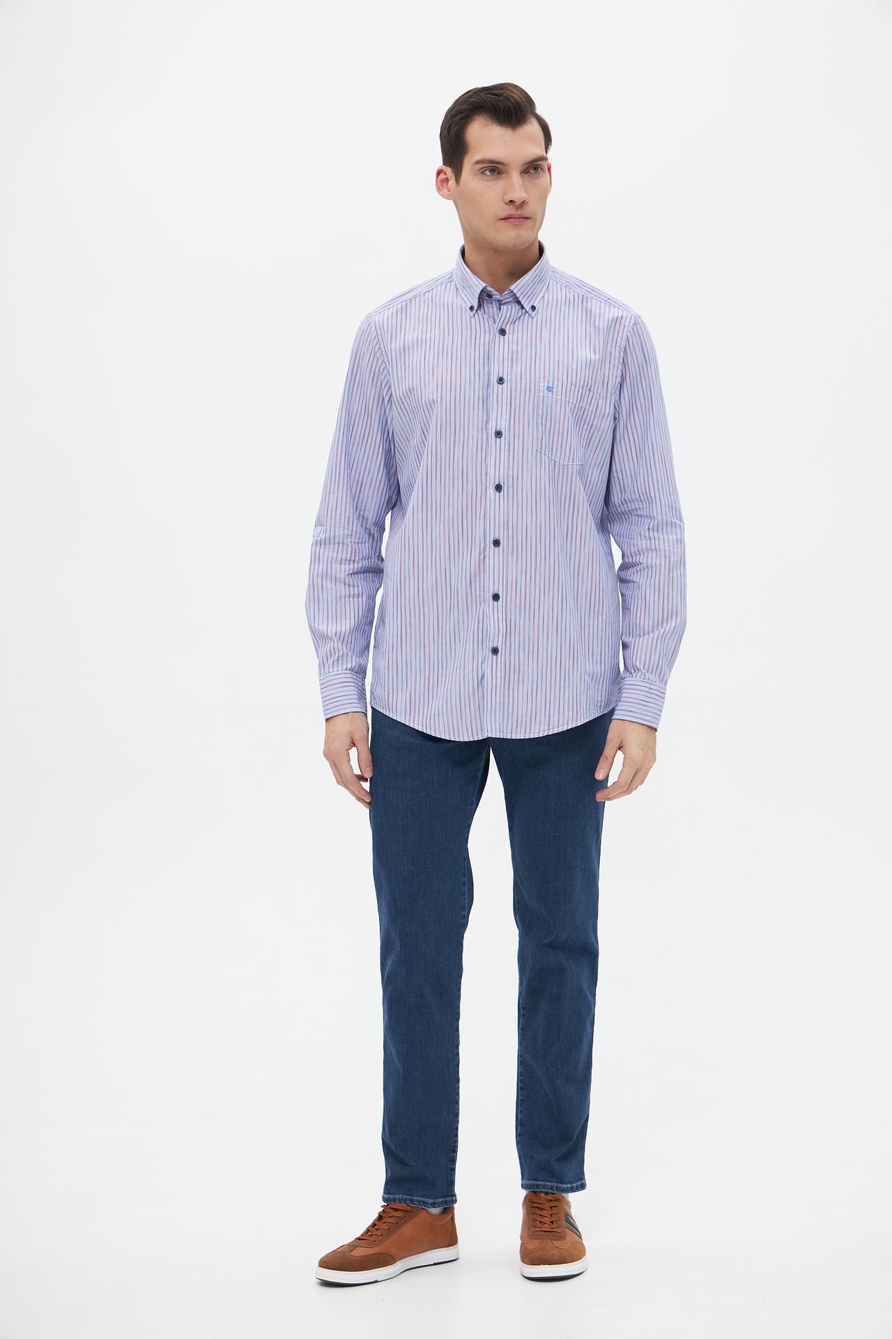 Стильная мужская рубашка с длинным рукавом от Casa Moda, выполненная из 100% хлопка. Классический крой и приятная на ощупь ткань обеспечат комфорт на протяжении всего дня. Вертикальная полоска придает образу элегантность и свежесть.